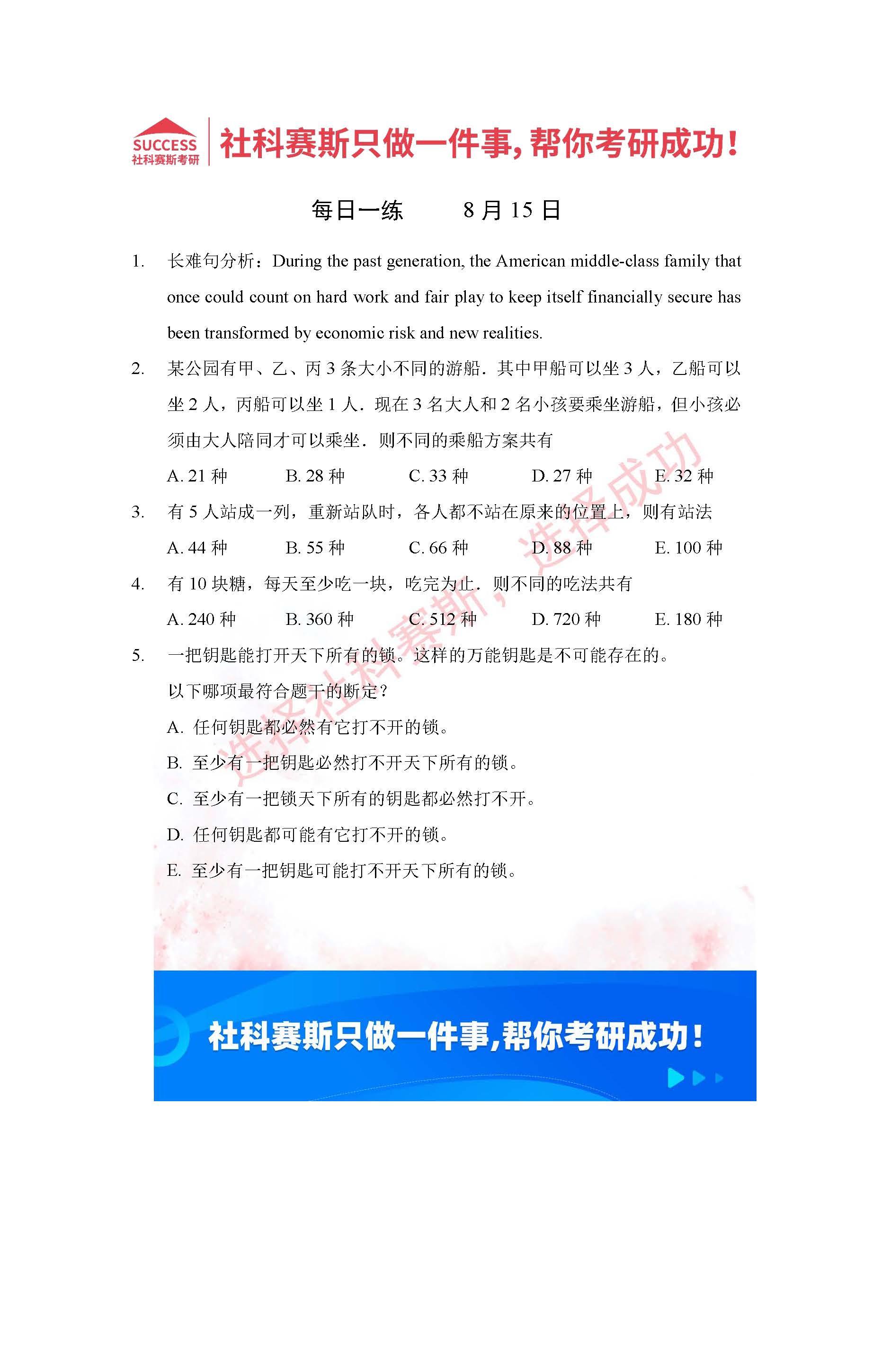 首頁> 管理類聯(lián)考每日一練 > 2022管理類聯(lián)考8月15日每日一練及答案