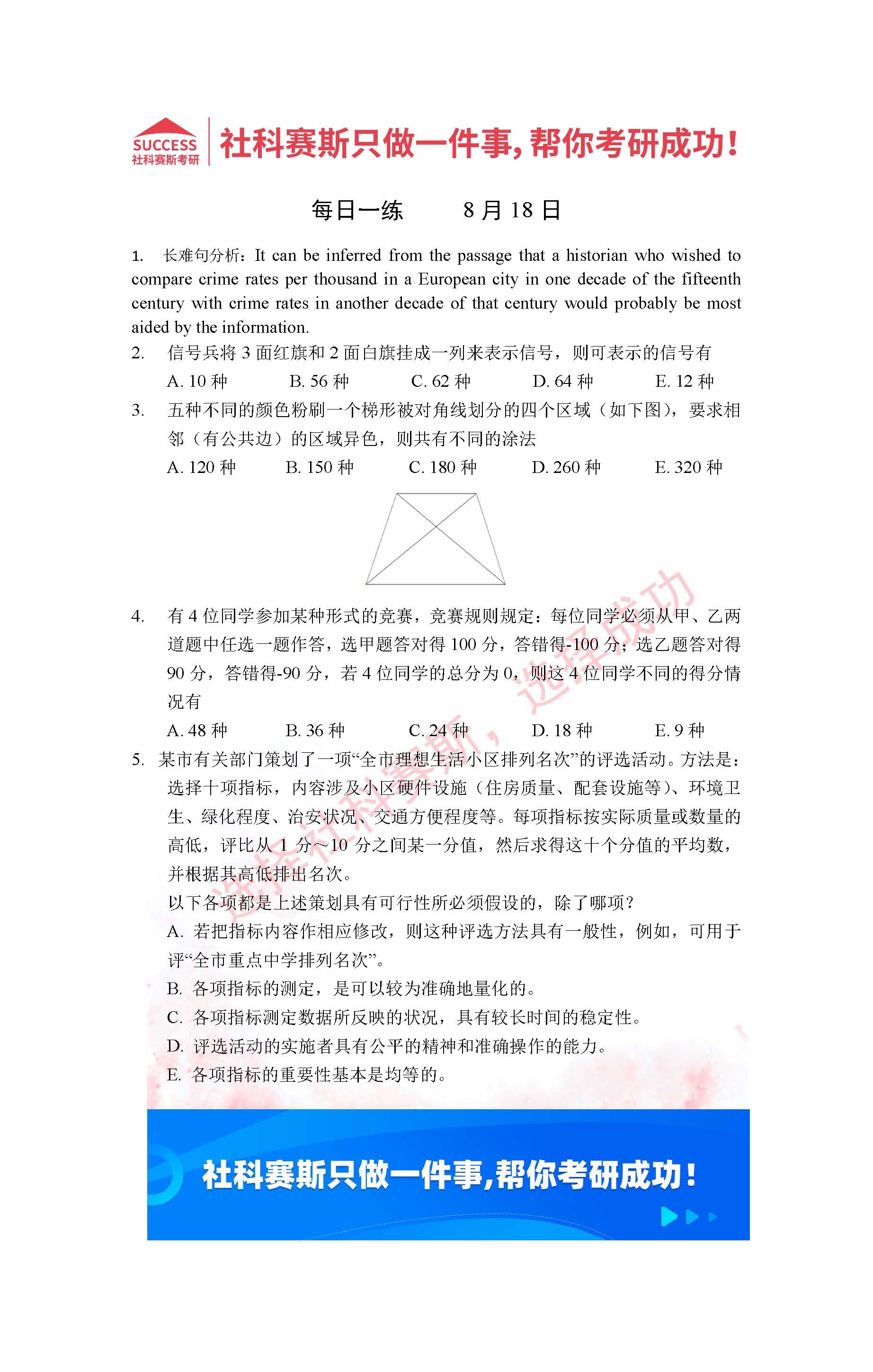 首頁> 管理類聯(lián)考每日一練 > 2022管理類聯(lián)考8月18日每日一練及答案