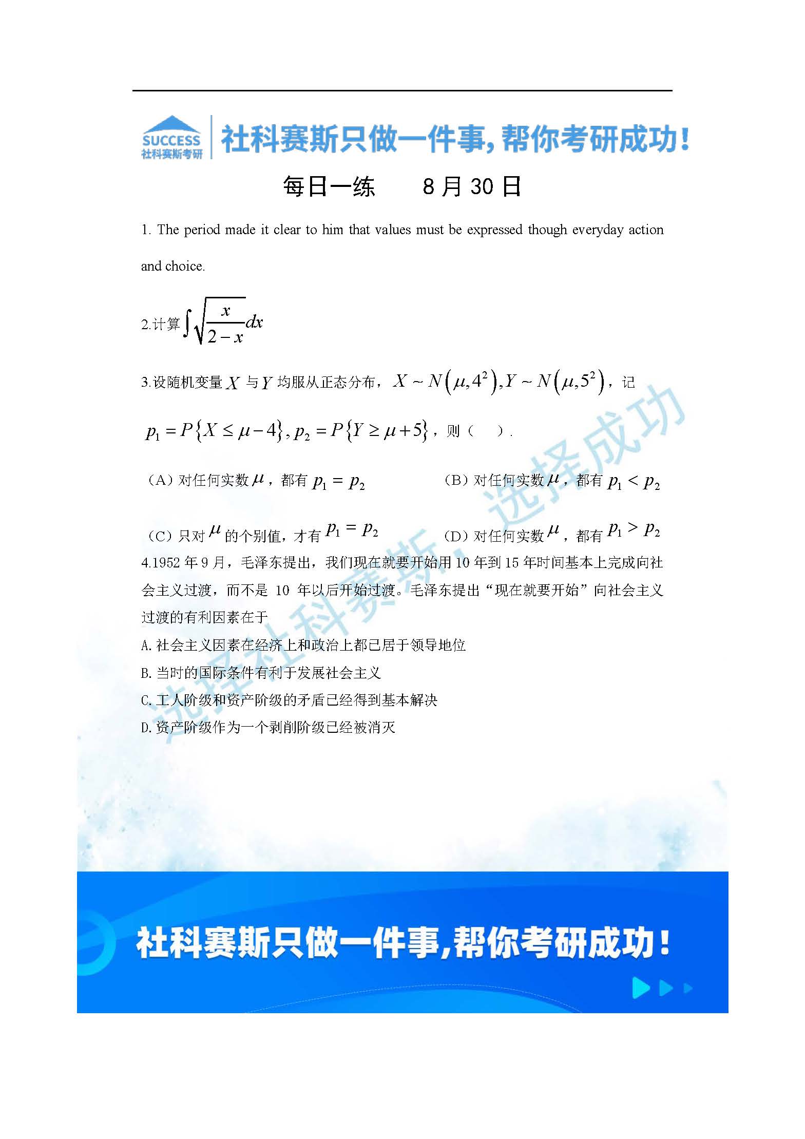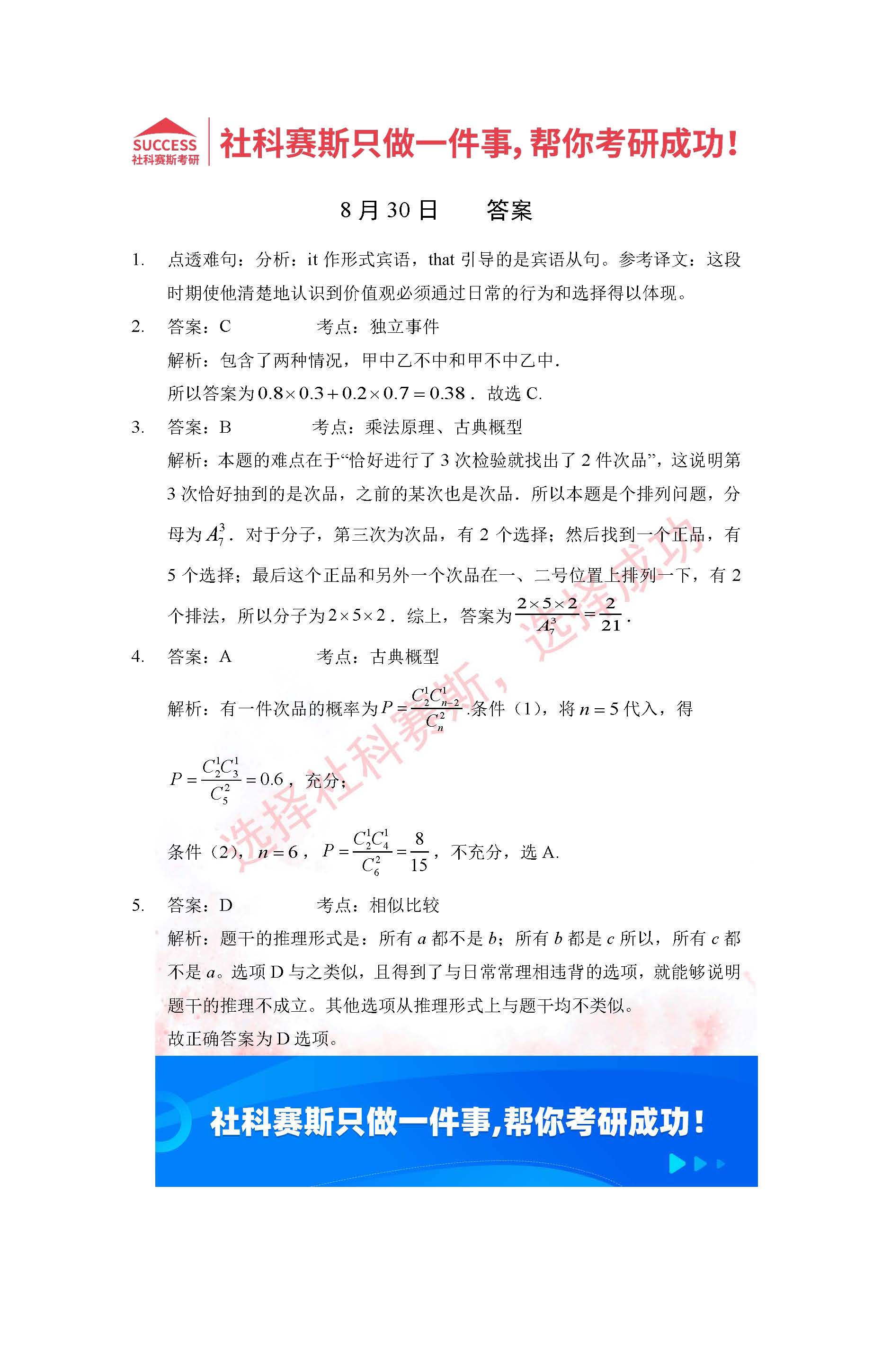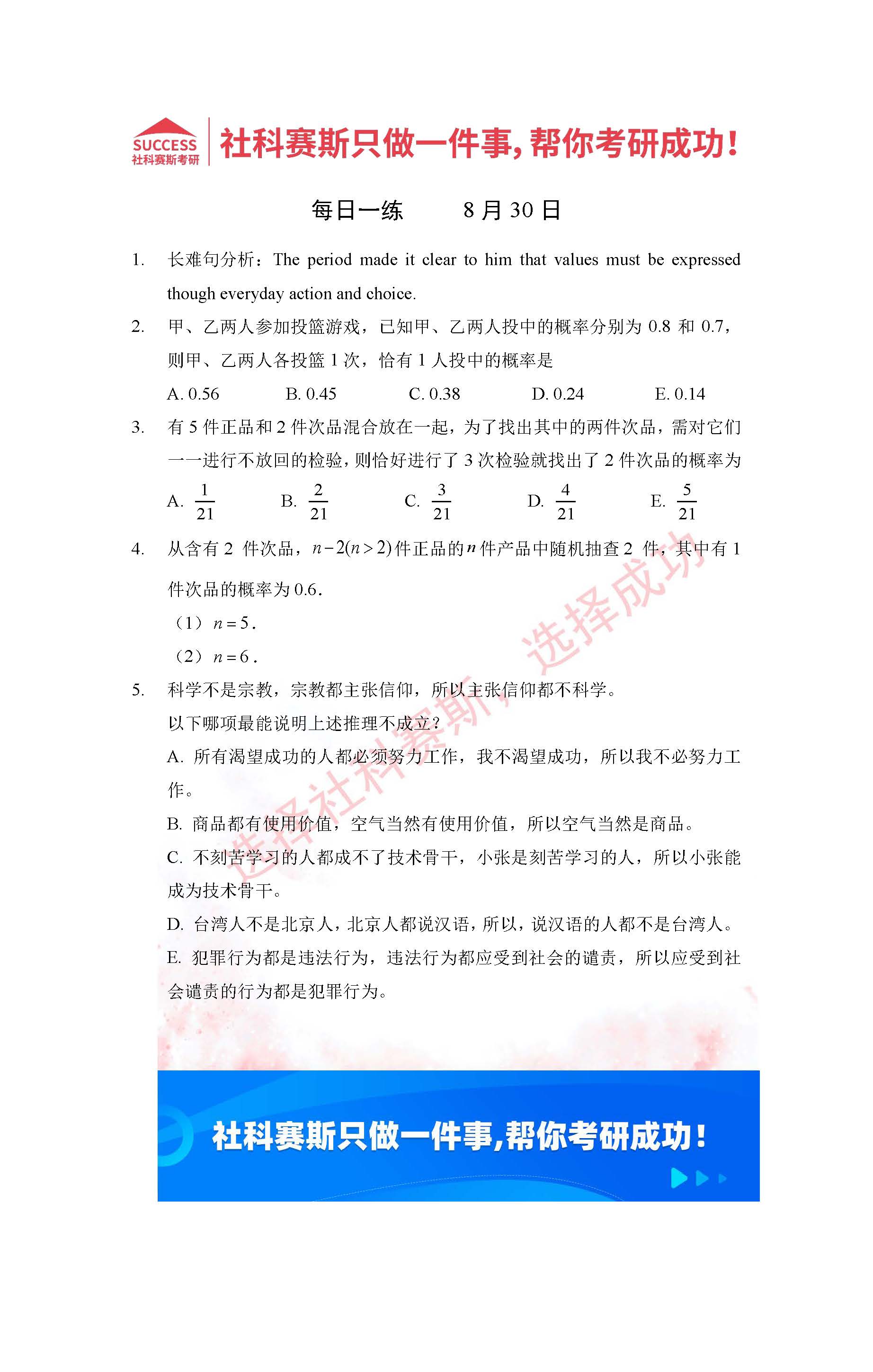 2022管理類聯(lián)考8月30日每日一練及答案”