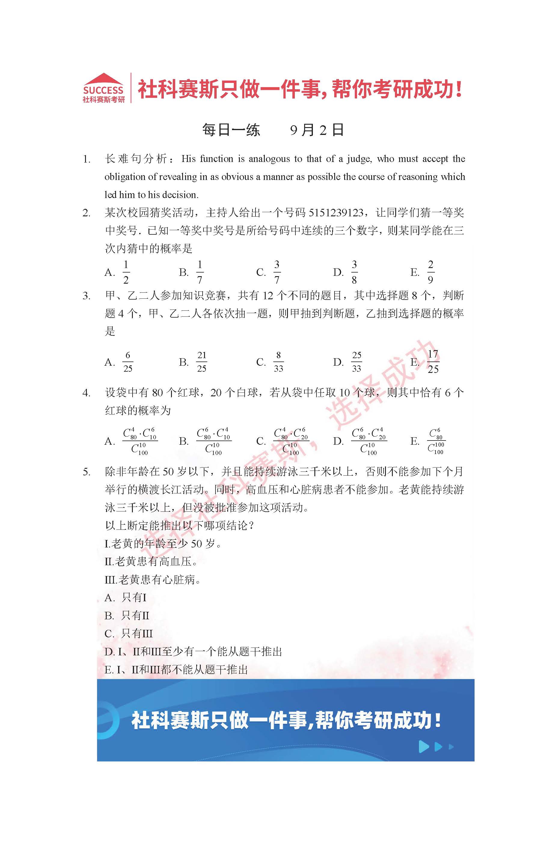 導(dǎo)讀:考研是一場持久戰(zhàn),保持良好的學(xué)習(xí)習(xí)慣,是能確保復(fù)習(xí)高效的關(guān)鍵。今天社科賽斯MBA備考網(wǎng)小編整理了“2022管理類聯(lián)考9月2日每日一練及答案”的內(nèi)容,希望能對廣大考生有所幫助。