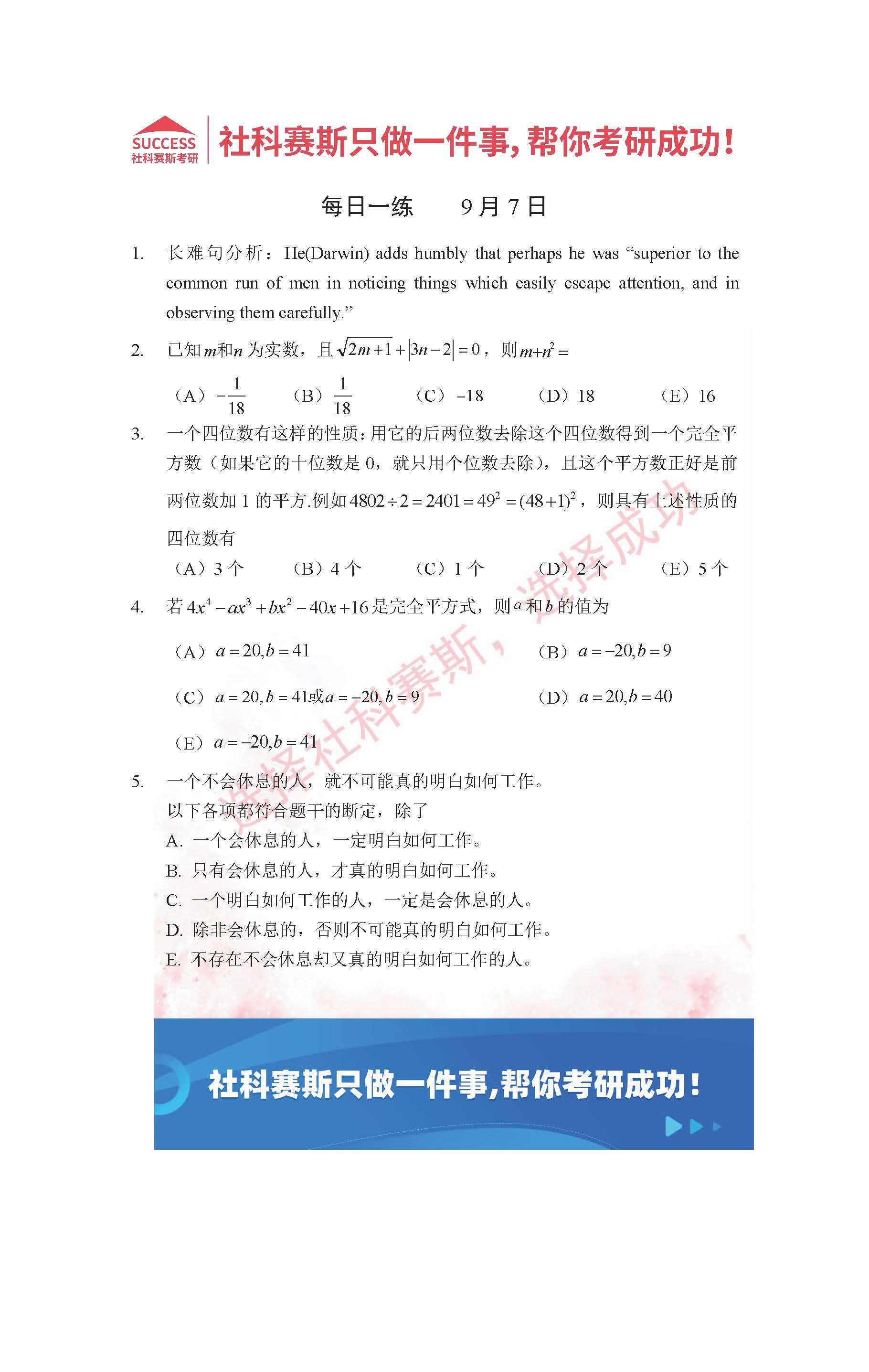 導(dǎo)讀:考研是一場持久戰(zhàn),保持良好的學(xué)習(xí)習(xí)慣,是能確保復(fù)習(xí)高效的關(guān)鍵。今天社科賽斯MBA備考網(wǎng)小編整理了“2022管理類聯(lián)考9月7日每日一練及答案”的內(nèi)容,希望能對廣大考生有所幫助。
