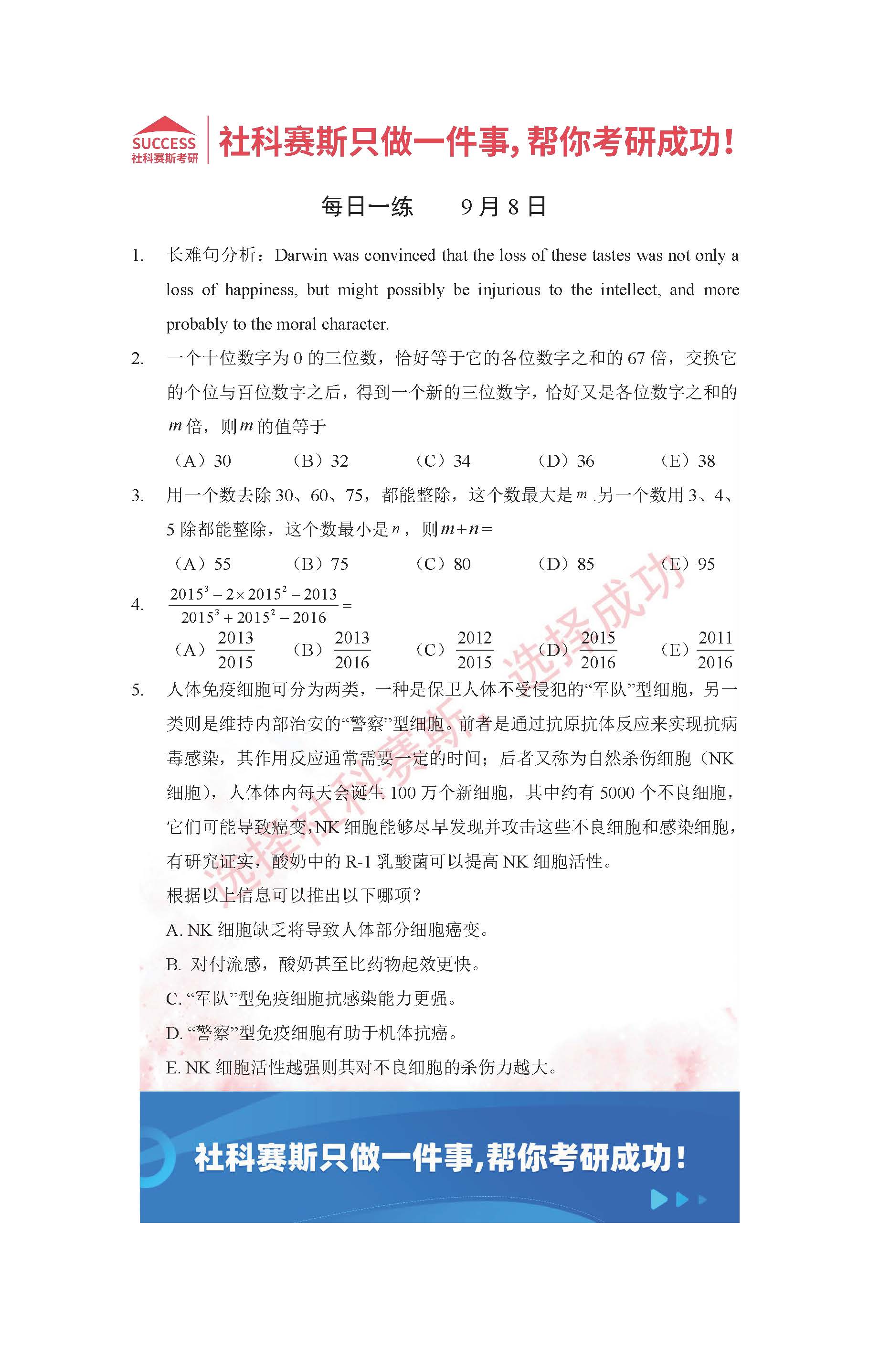 導(dǎo)讀:考研是一場(chǎng)持久戰(zhàn),保持良好的學(xué)習(xí)習(xí)慣,是能確保復(fù)習(xí)高效的關(guān)鍵。今天社科賽斯MBA備考網(wǎng)小編整理了“2022管理類聯(lián)考9月8日每日一練及答案”的內(nèi)容,希望能對(duì)廣大考生有所幫助。