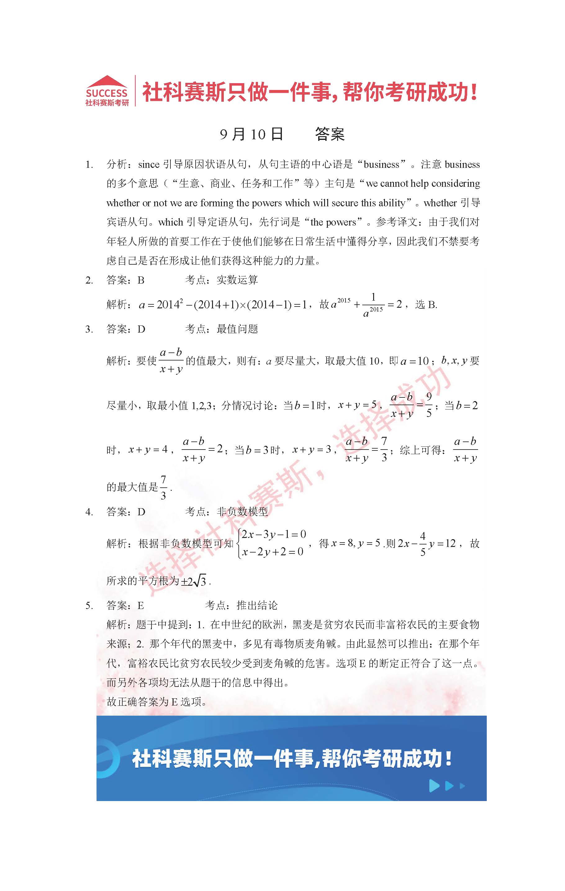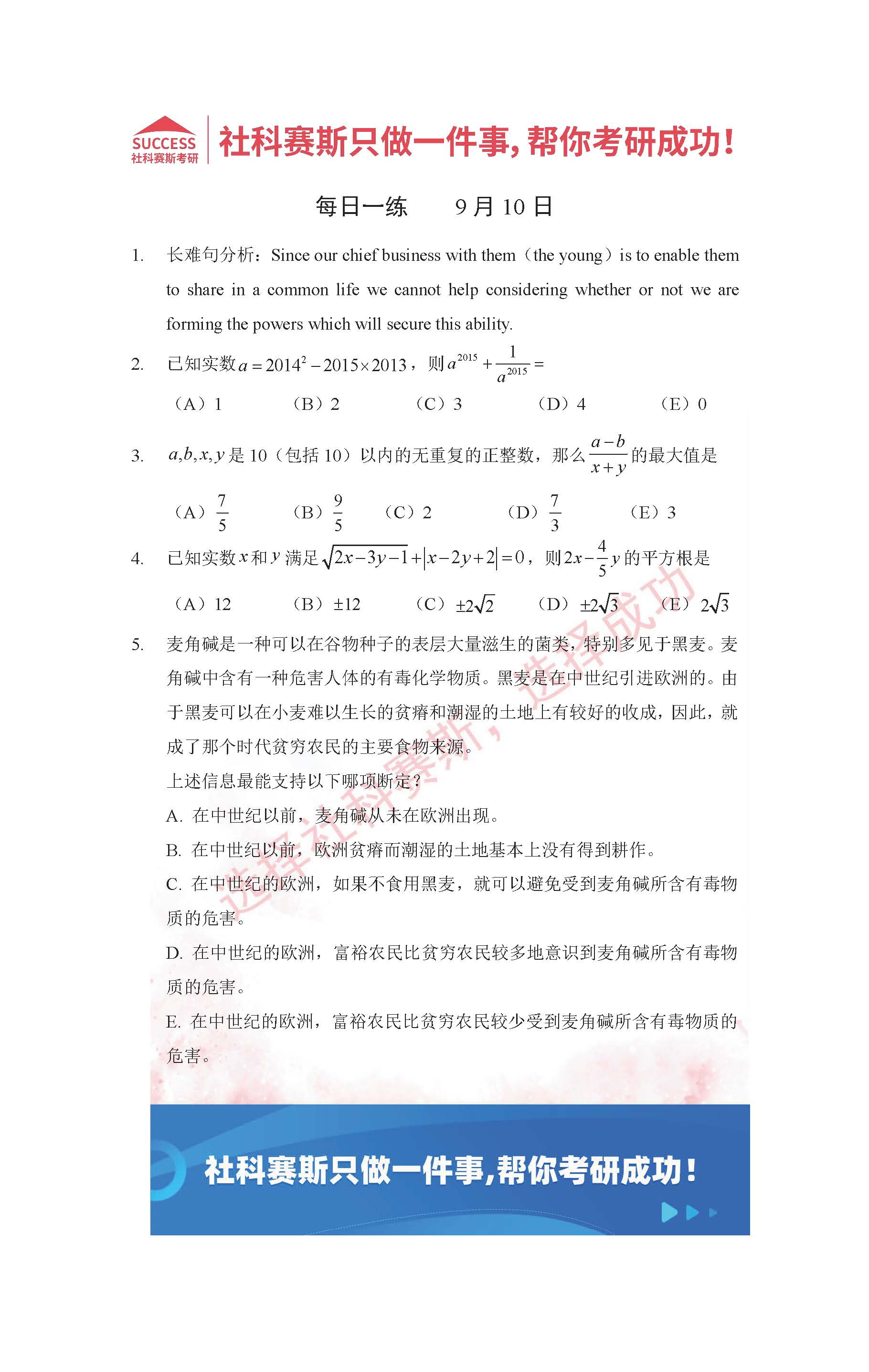 導讀:考研是一場持久戰(zhàn),保持良好的學習習慣,是能確保復習高效的關鍵。今天社科賽斯MBA備考網小編整理了“2022管理類聯(lián)考9月10日每日一練及答案”的內容,希望能對廣大考生有所幫助。
