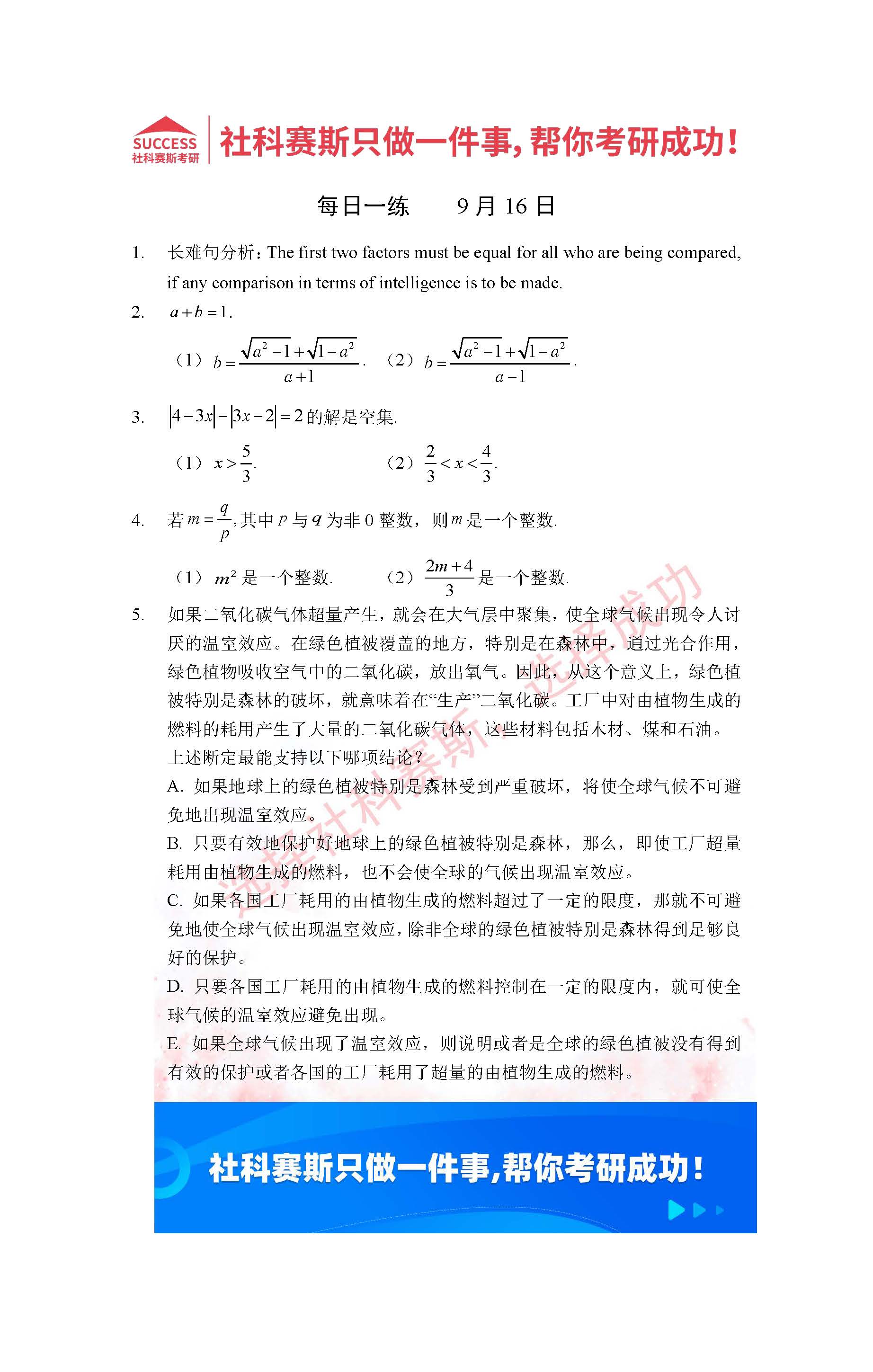 導(dǎo)讀:考研是一場持久戰(zhàn),保持良好的學(xué)習(xí)習(xí)慣,是能確保復(fù)習(xí)高效的關(guān)鍵。今天社科賽斯MBA備考網(wǎng)小編整理了“2022管理類聯(lián)考9月16日每日一練及答案”的內(nèi)容,希望能對(duì)廣大考生有所幫助。