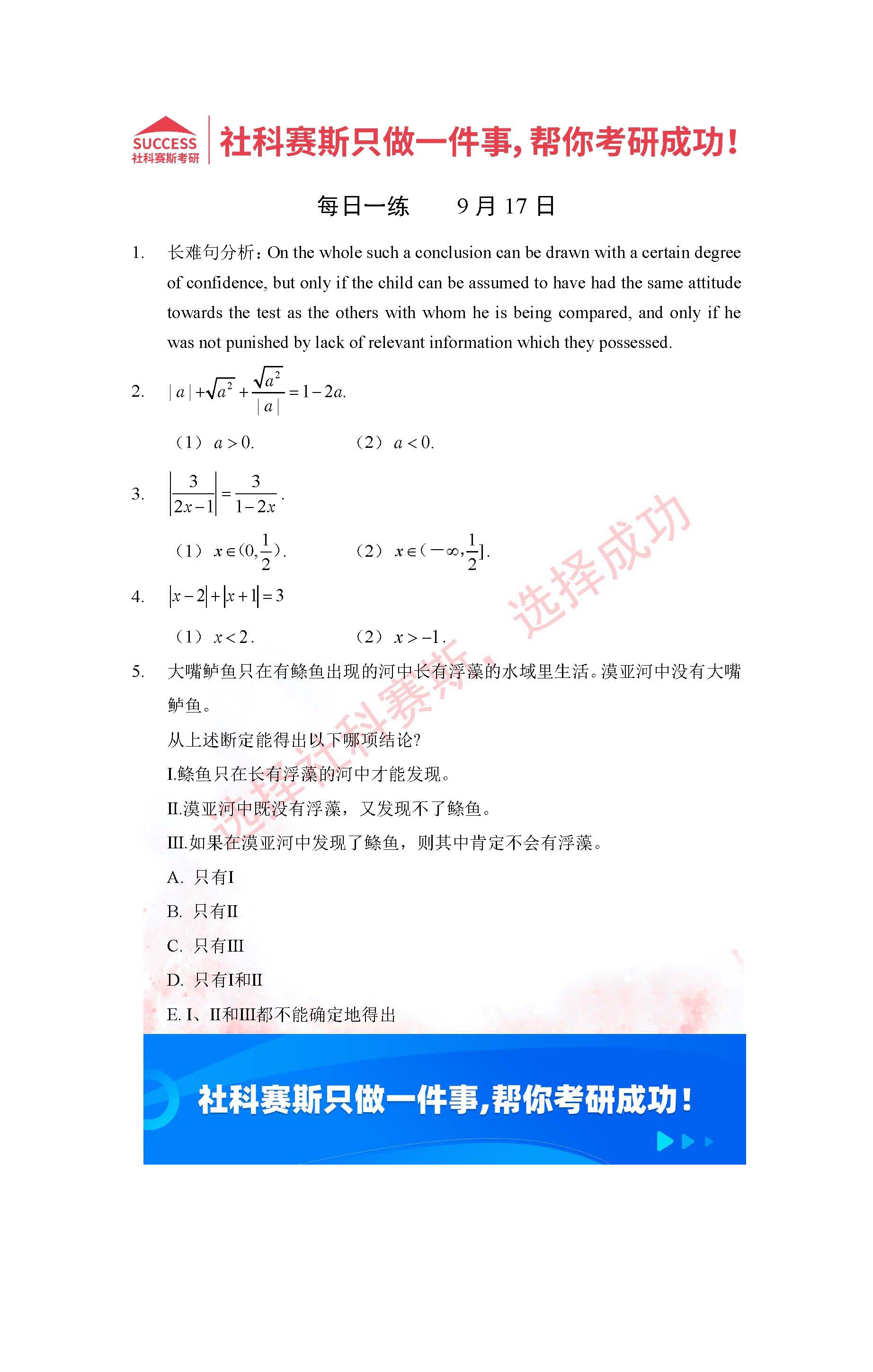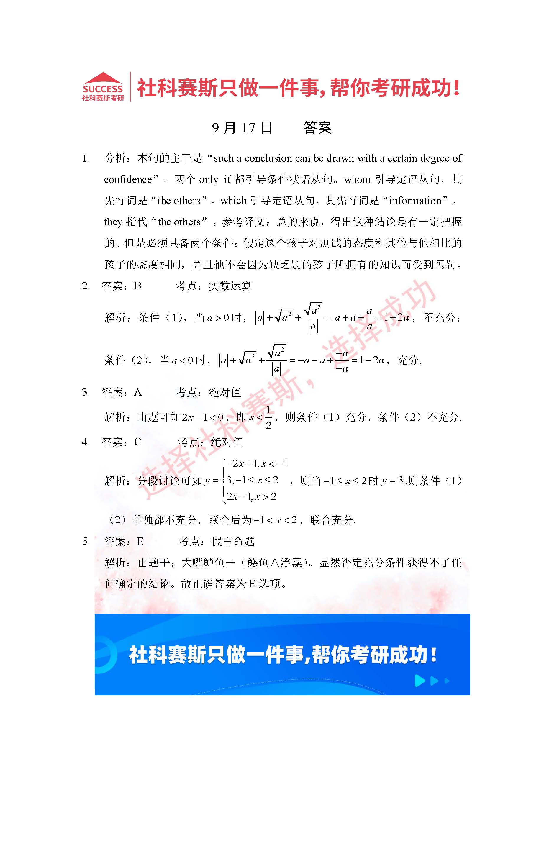 導(dǎo)讀:考研是一場持久戰(zhàn),保持良好的學(xué)習(xí)習(xí)慣,是能確保復(fù)習(xí)高效的關(guān)鍵。今天社科賽斯MBA備考網(wǎng)小編整理了“2022管理類聯(lián)考9月17日每日一練及答案”的內(nèi)容,希望能對廣大考生有所幫助。