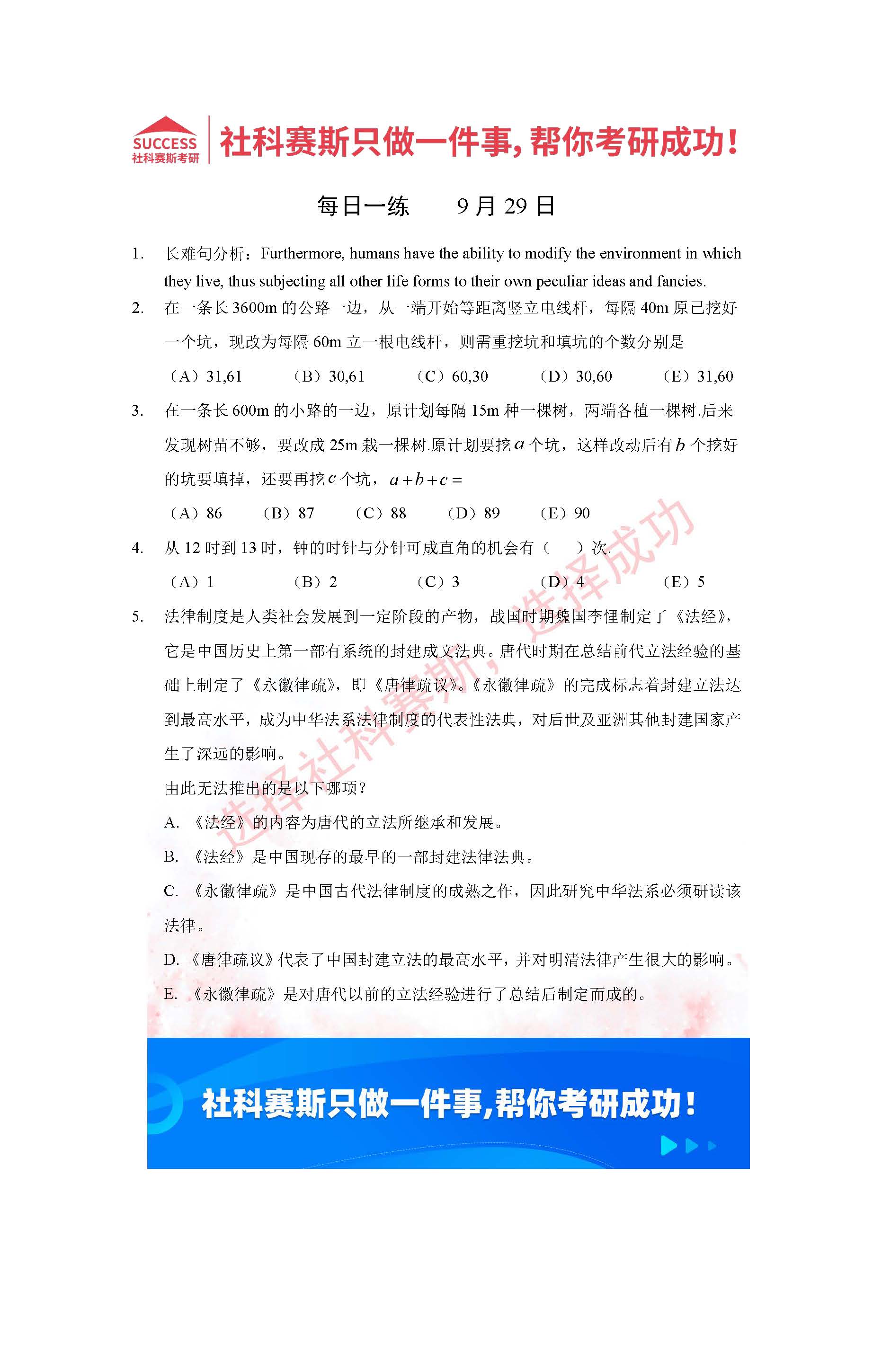 導(dǎo)讀:考研是一場(chǎng)持久戰(zhàn),保持良好的學(xué)習(xí)習(xí)慣,是能確保復(fù)習(xí)高效的關(guān)鍵。今天社科賽斯MBA備考網(wǎng)小編整理了“2022管理類(lèi)聯(lián)考9月29日每日一練及答案”的內(nèi)容,希望能對(duì)廣大考生有所幫助。