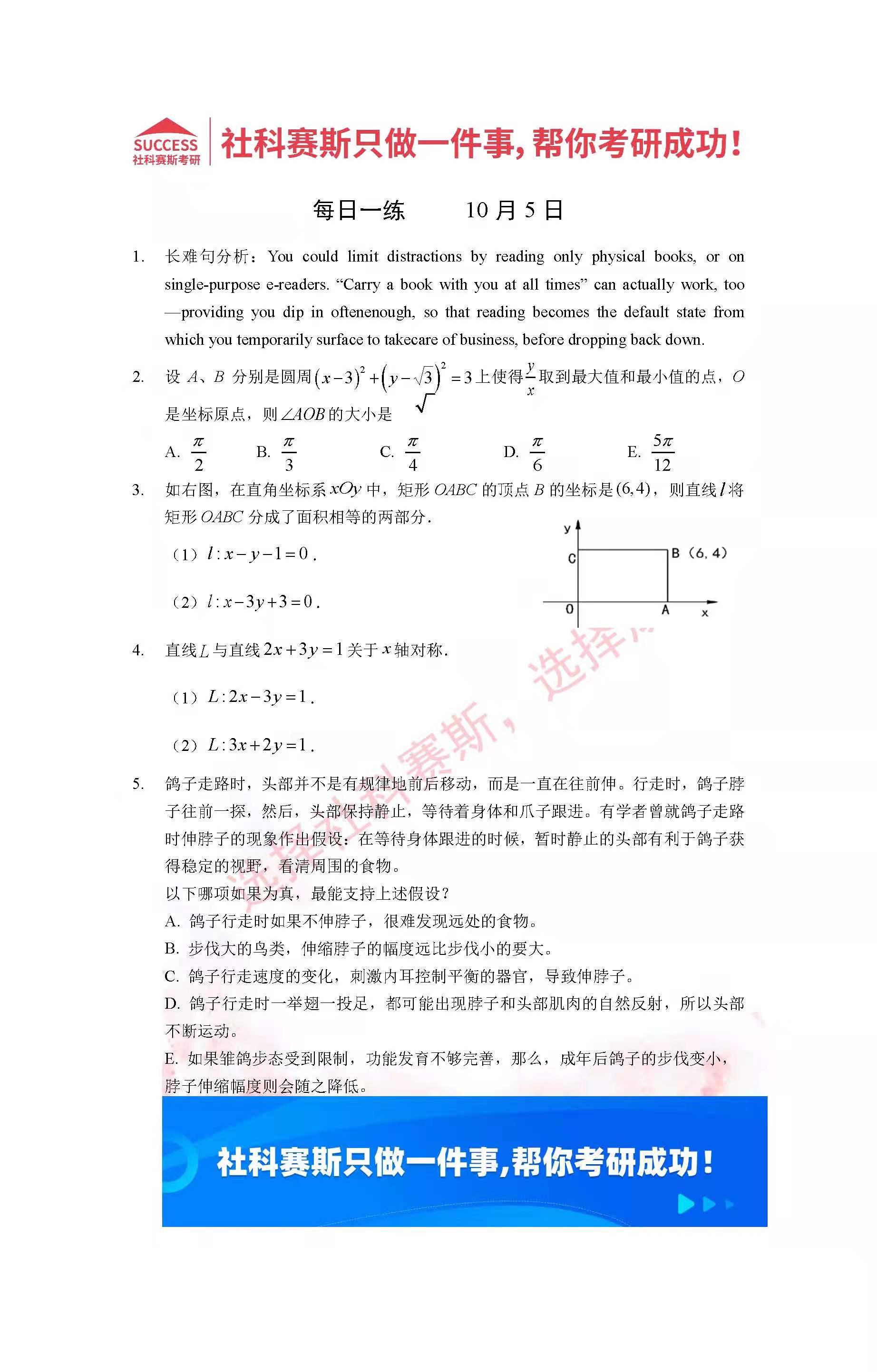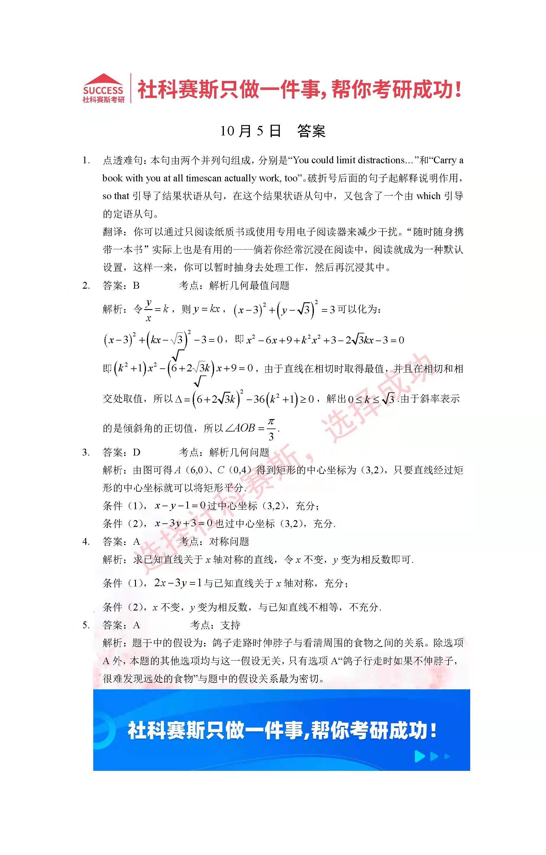 導(dǎo)讀:考研是一場持久戰(zhàn),保持良好的學(xué)習(xí)習(xí)慣,是能確保復(fù)習(xí)高效的關(guān)鍵。今天社科賽斯MBA備考網(wǎng)小編整理了“2022管理類聯(lián)考10月5日每日一練及答案”的內(nèi)容,希望能對廣大考生有所幫助。