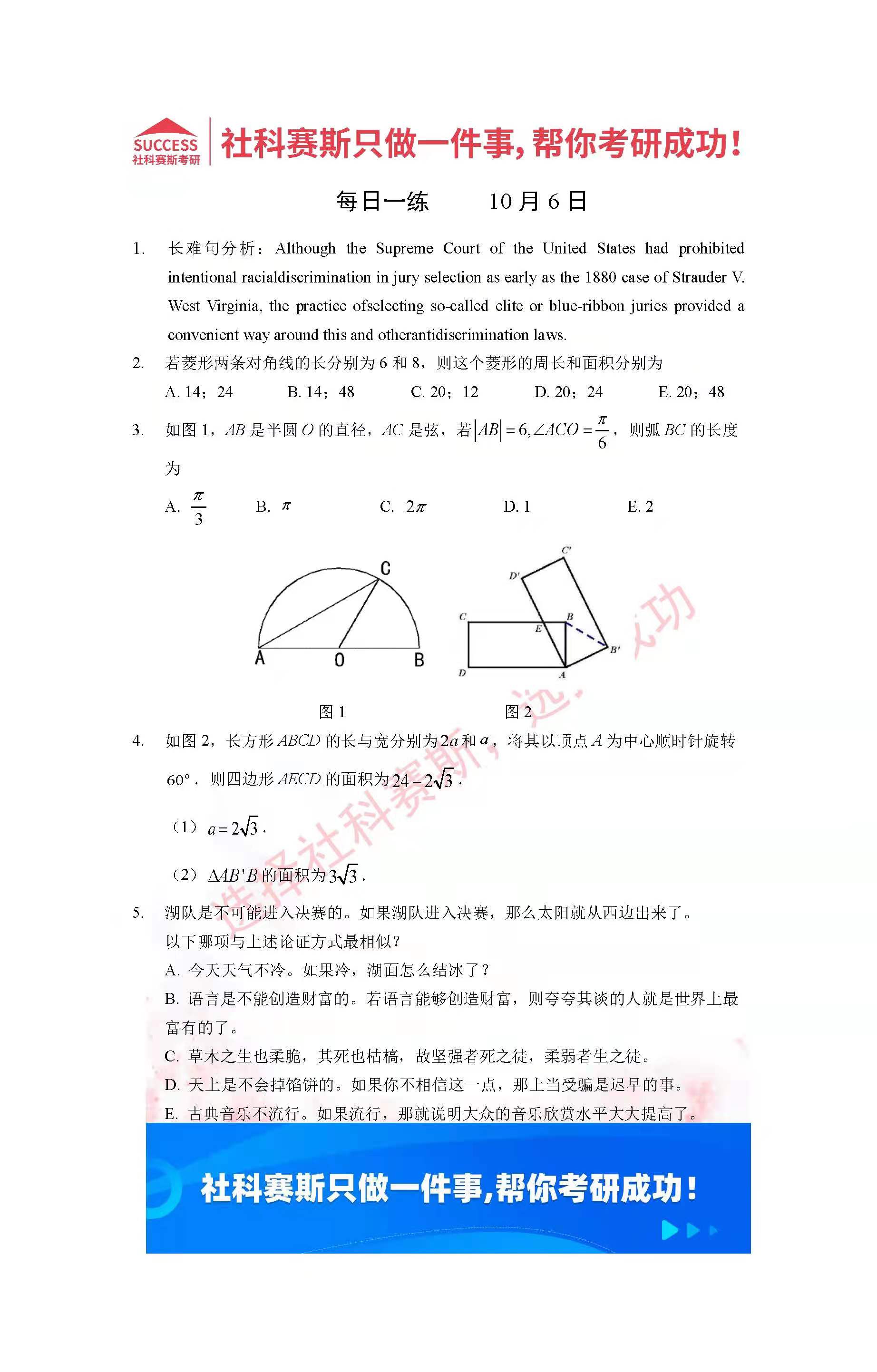 導讀:考研是一場持久戰(zhàn),保持良好的學習習慣,是能確保復習高效的關鍵。今天社科賽斯MBA備考網(wǎng)小編整理了“2022管理類聯(lián)考10月6日每日一練及答案”的內容,希望能對廣大考生有所幫助。