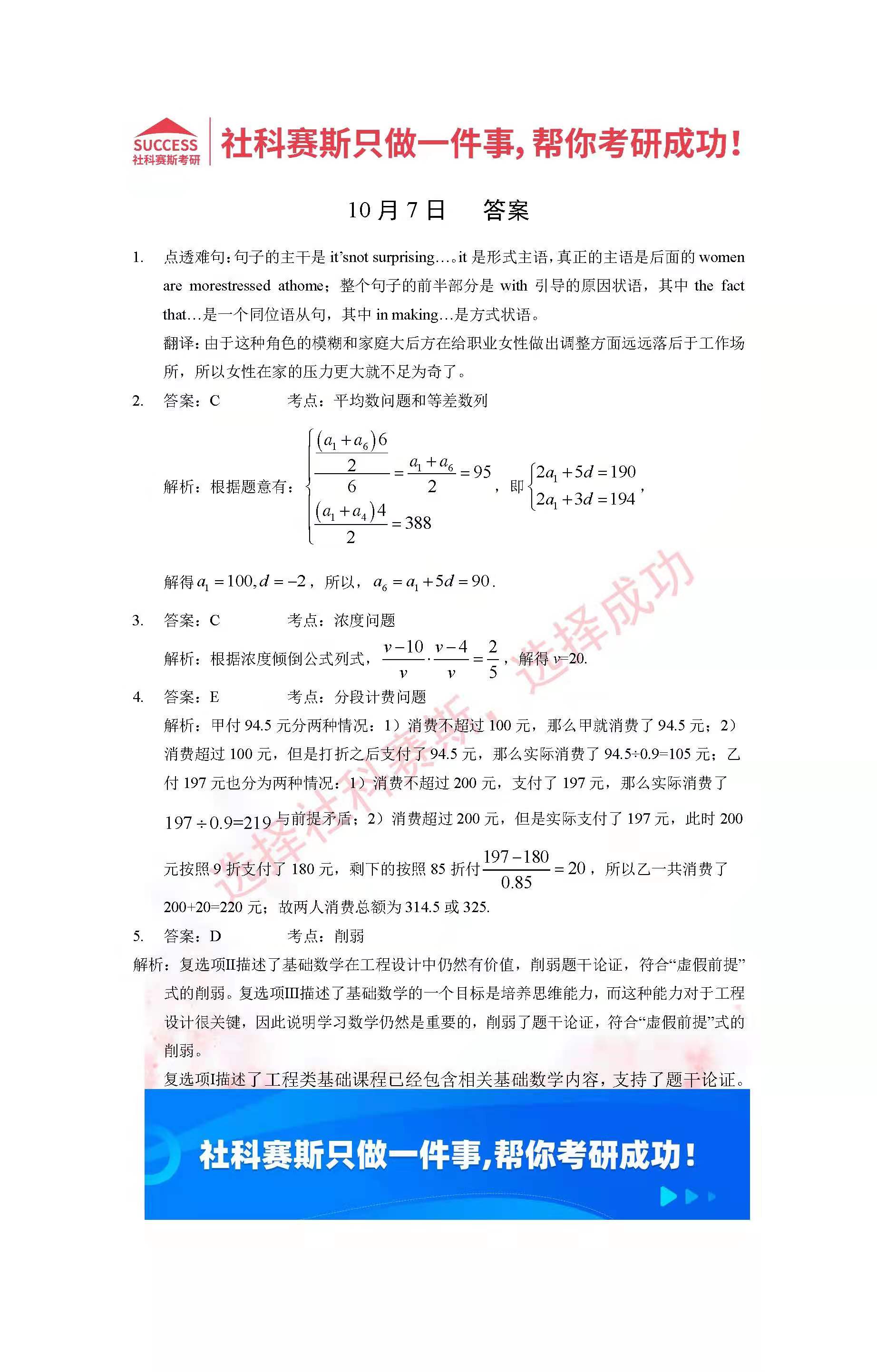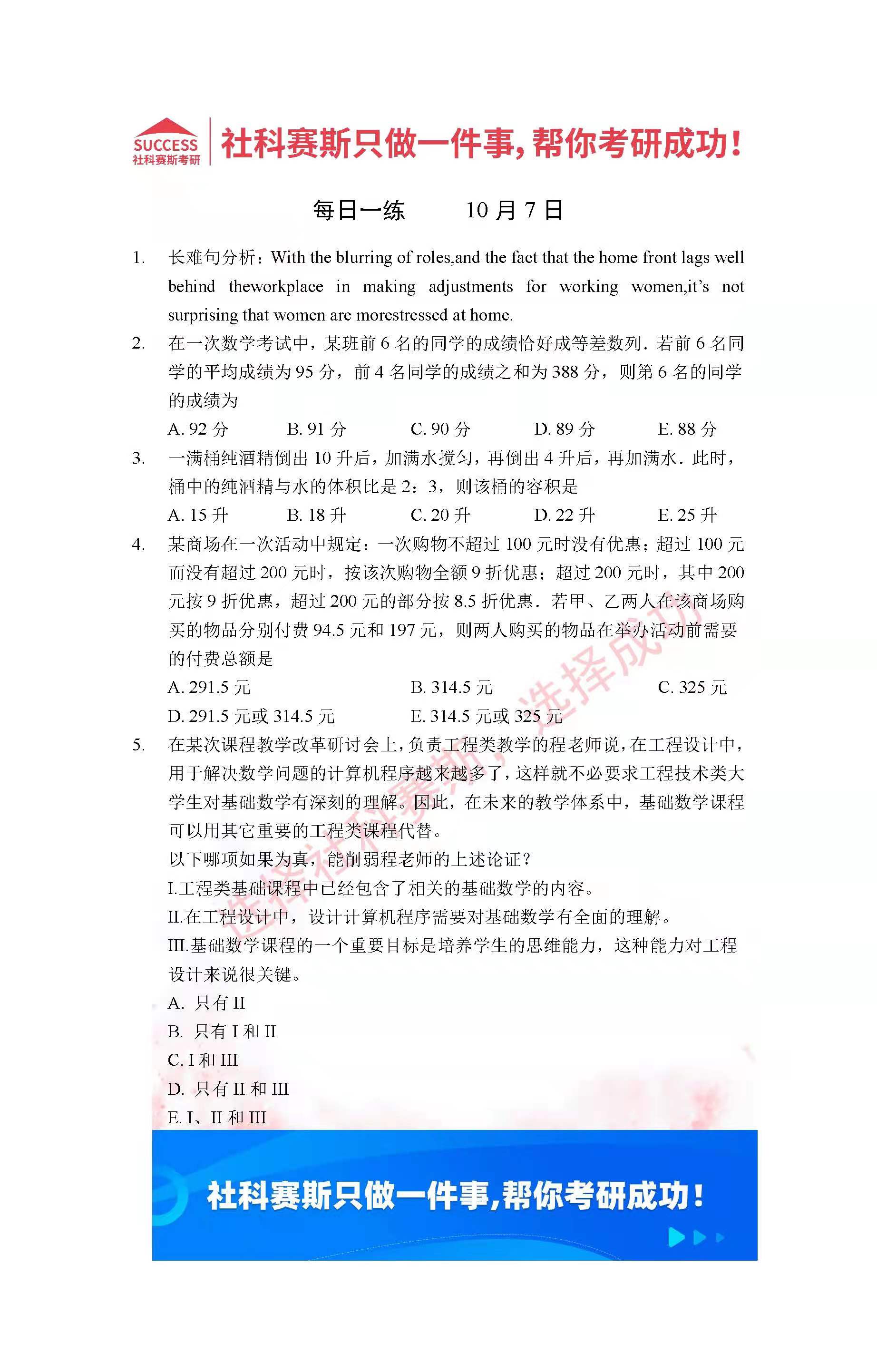 導(dǎo)讀:考研是一場(chǎng)持久戰(zhàn),保持良好的學(xué)習(xí)習(xí)慣,是能確保復(fù)習(xí)高效的關(guān)鍵。今天社科賽斯MBA備考網(wǎng)小編整理了“2022管理類聯(lián)考10月7日每日一練及答案”的內(nèi)容,希望能對(duì)廣大考生有所幫助。