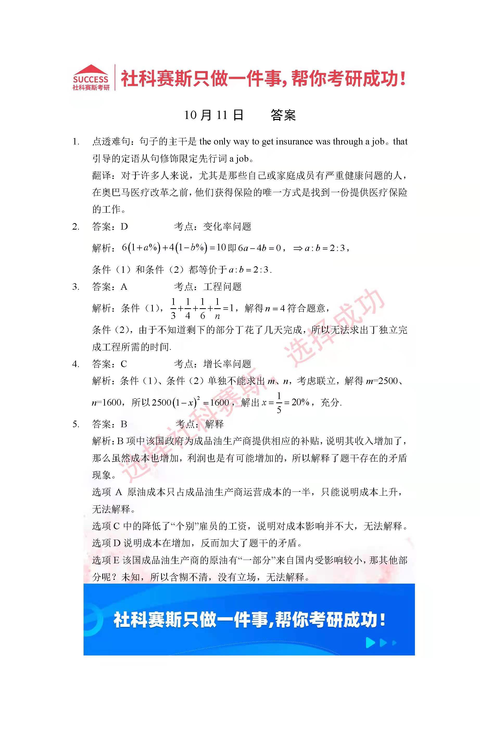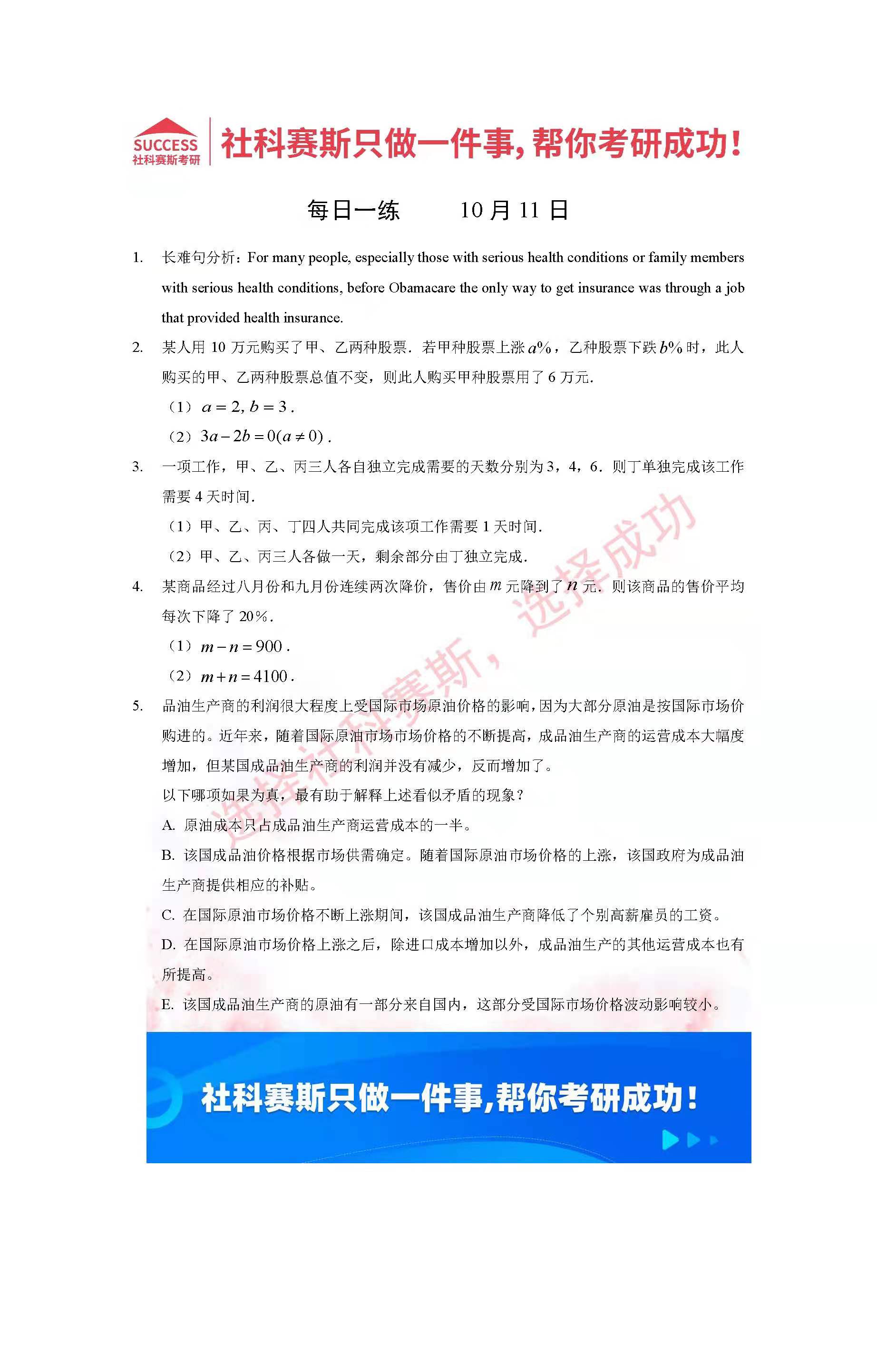 首頁> 管理類聯(lián)考每日一練 > 2022管理類聯(lián)考10月11日每日一練及答案