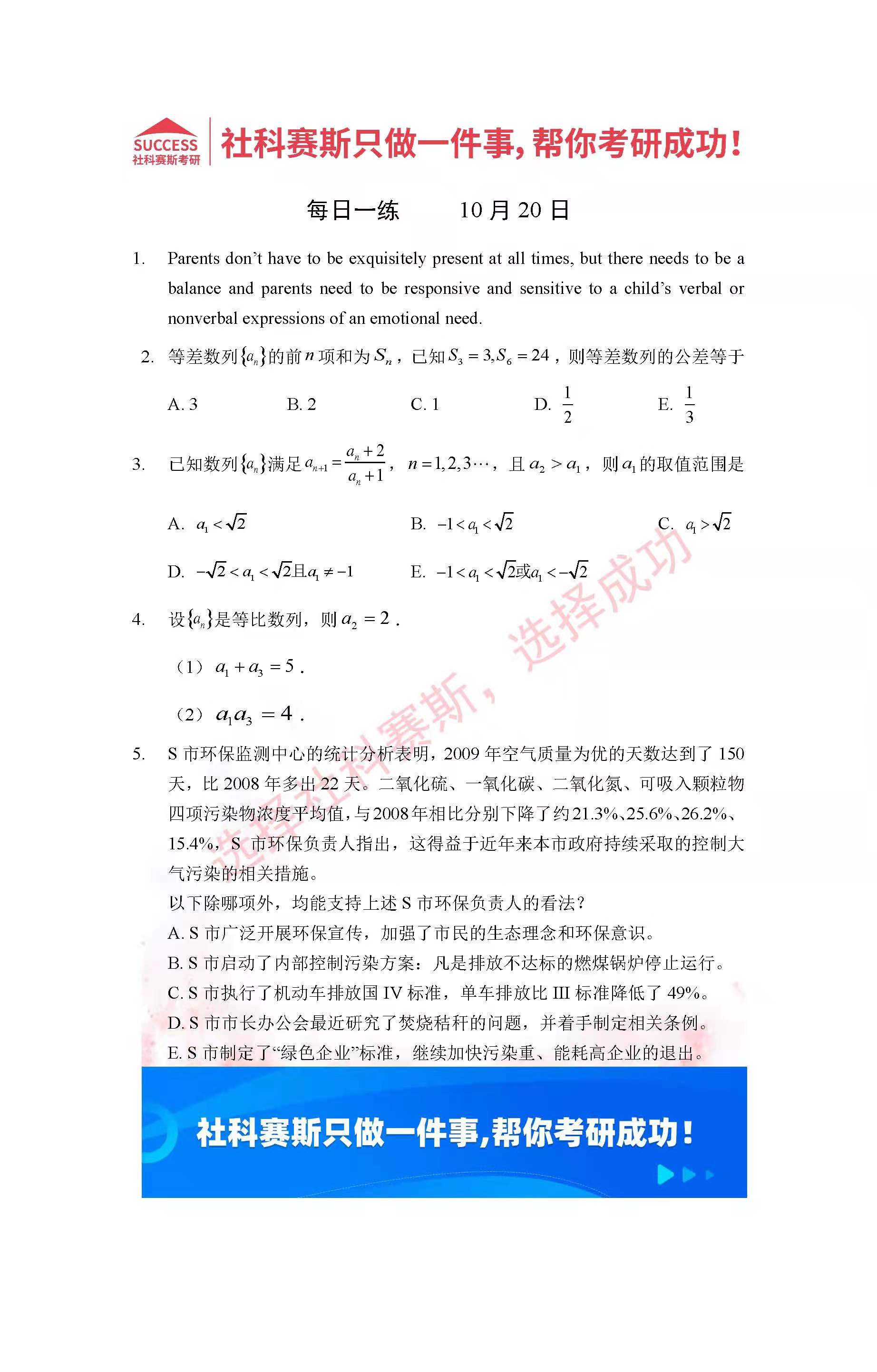 導(dǎo)讀:考研是一場持久戰(zhàn),保持良好的學(xué)習(xí)習(xí)慣,是能確保復(fù)習(xí)高效的關(guān)鍵。今天社科賽斯MBA備考網(wǎng)小編整理了“2022管理類聯(lián)考10月20日每日一練及答案”的內(nèi)容,希望能對廣大考生有所幫助。