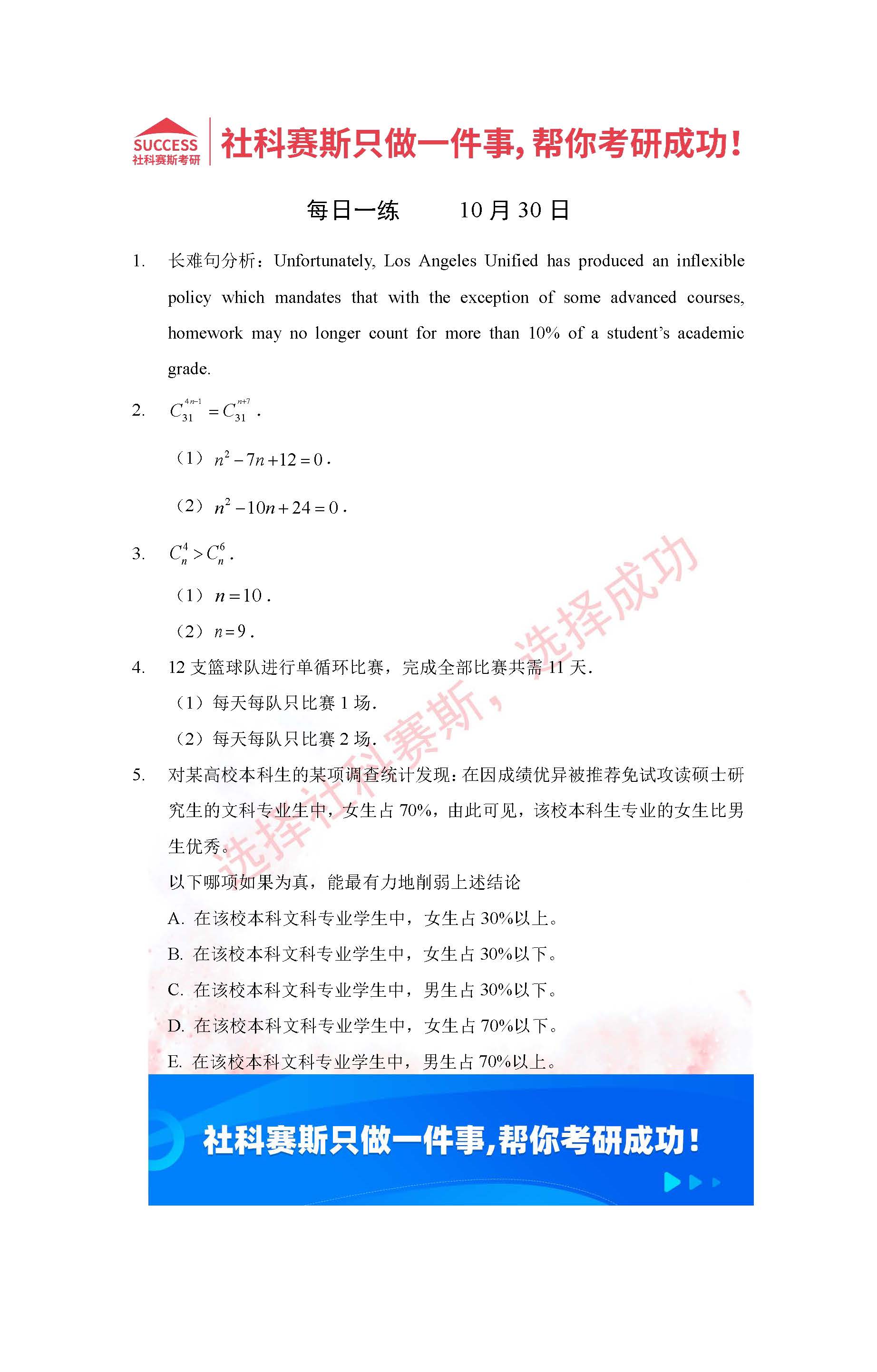首頁> 管理類聯(lián)考每日一練 > 2022管理類聯(lián)考10月30日每日一練及答案