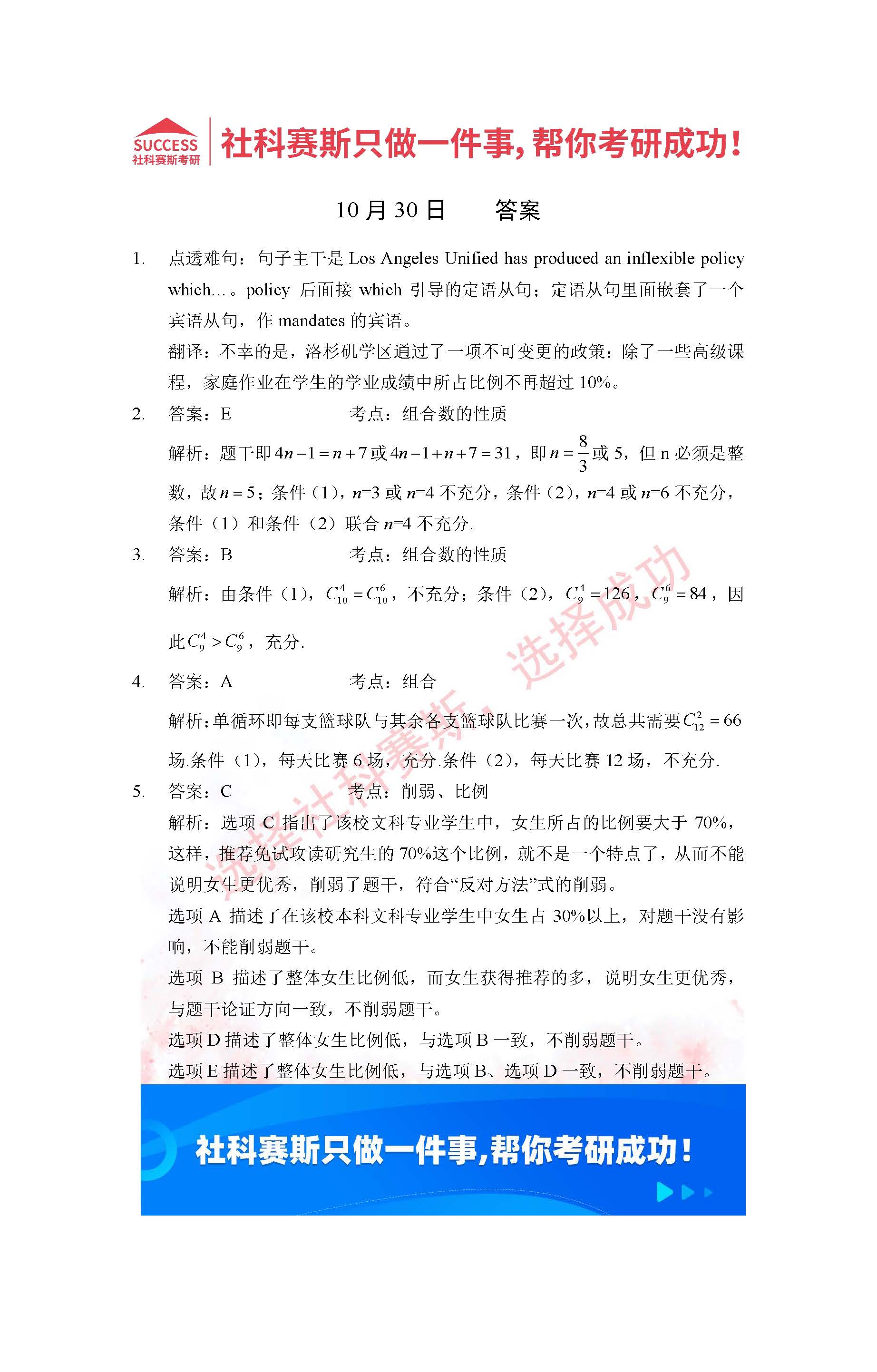 導(dǎo)讀:考研是一場持久戰(zhàn),保持良好的學(xué)習(xí)習(xí)慣,是能確保復(fù)習(xí)高效的關(guān)鍵。今天社科賽斯MBA備考網(wǎng)小編整理了“2022管理類聯(lián)考10月30日每日一練及答案”的內(nèi)容,希望能對廣大考生有所幫助。
