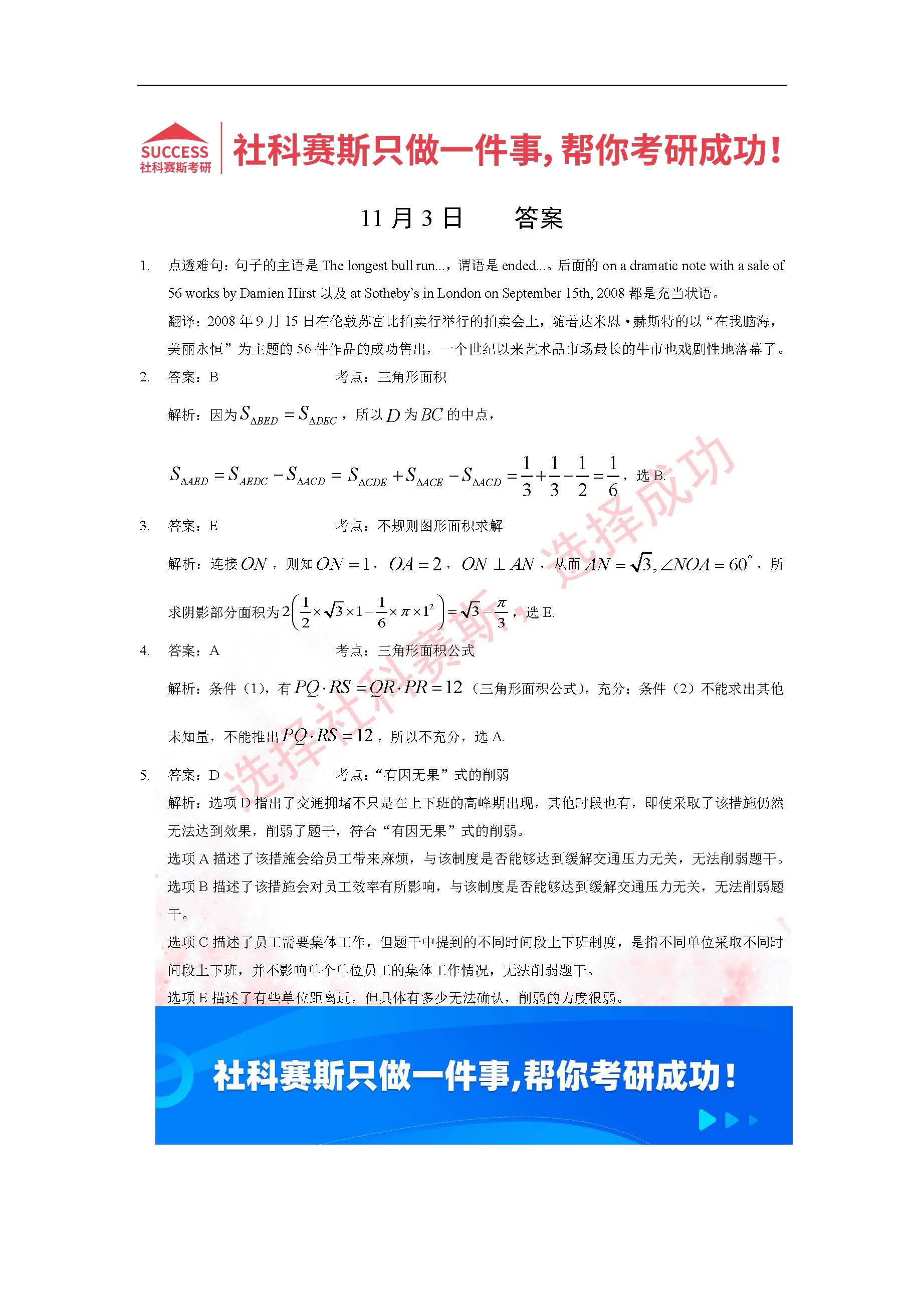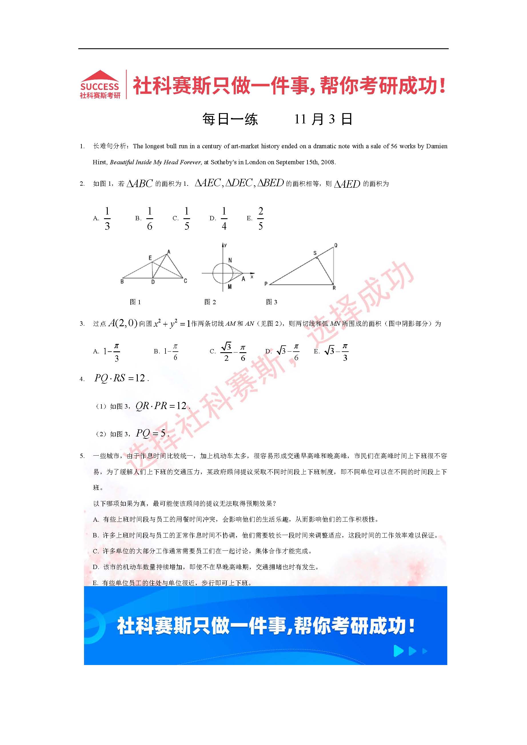 導(dǎo)讀:考研是一場持久戰(zhàn),保持良好的學(xué)習(xí)習(xí)慣,是能確保復(fù)習(xí)高效的關(guān)鍵。今天社科賽斯MBA備考網(wǎng)小編整理了“2022管理類聯(lián)考11月3日每日一練及答案”的內(nèi)容,希望能對廣大考生有所幫助。