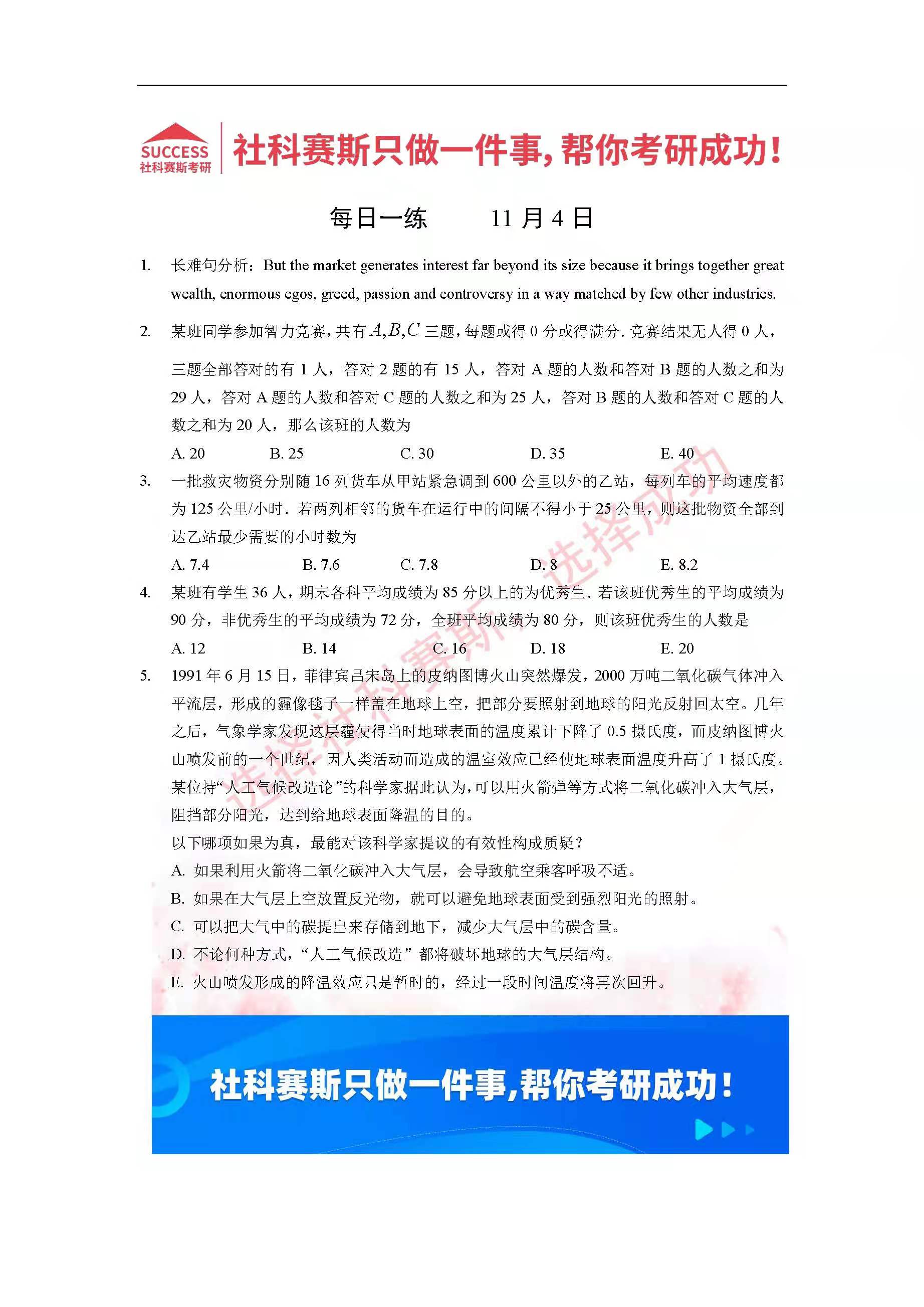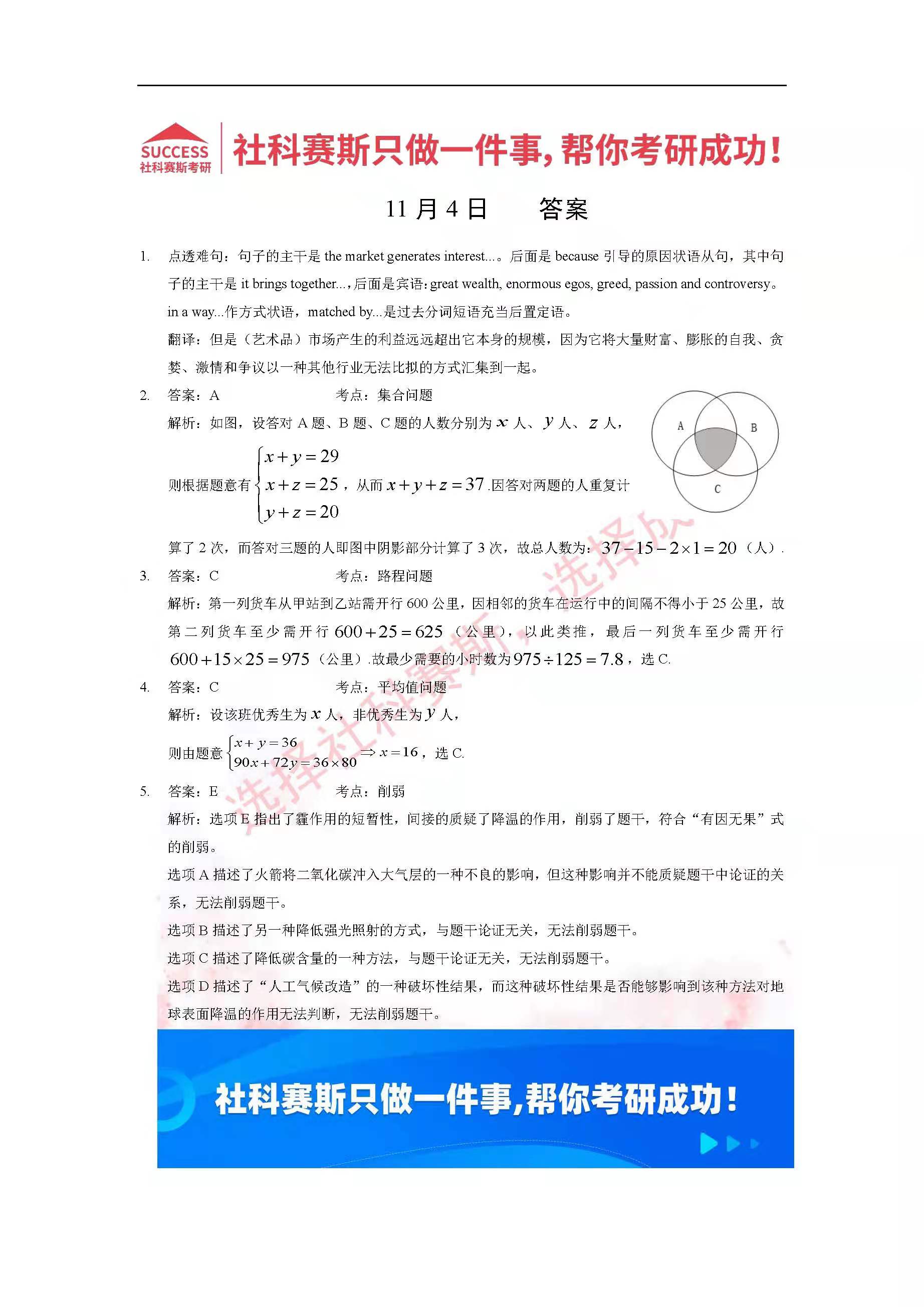 導(dǎo)讀:考研是一場持久戰(zhàn),保持良好的學(xué)習(xí)習(xí)慣,是能確保復(fù)習(xí)高效的關(guān)鍵。今天社科賽斯MBA備考網(wǎng)小編整理了“2022管理類聯(lián)考11月4日每日一練及答案”的內(nèi)容,希望能對廣大考生有所幫助。