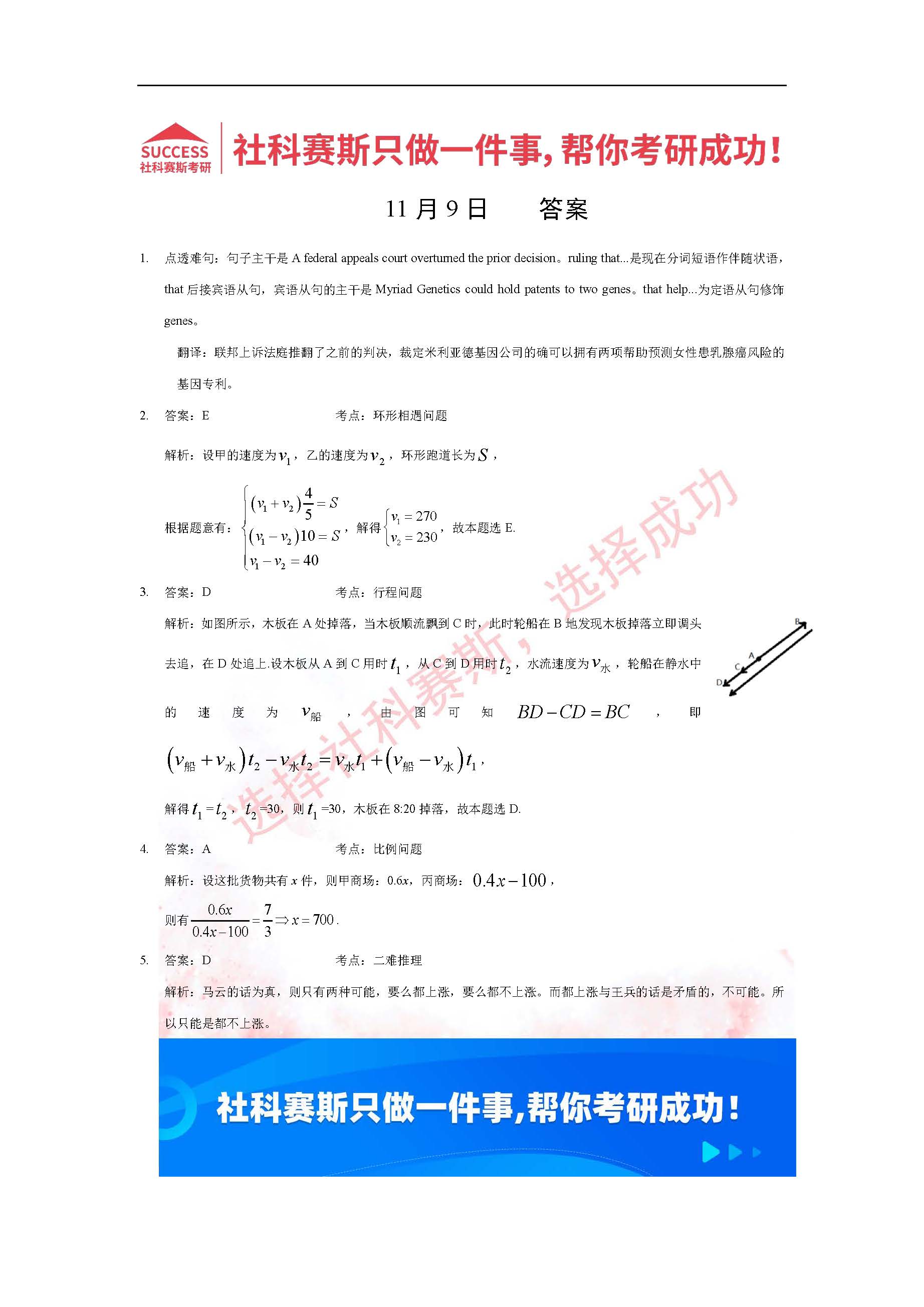 導(dǎo)讀:考研是一場(chǎng)持久戰(zhàn),保持良好的學(xué)習(xí)習(xí)慣,是能確保復(fù)習(xí)高效的關(guān)鍵。今天社科賽斯MBA備考網(wǎng)小編整理了“2022管理類聯(lián)考11月9日每日一練及答案”的內(nèi)容,希望能對(duì)廣大考生有所幫助。