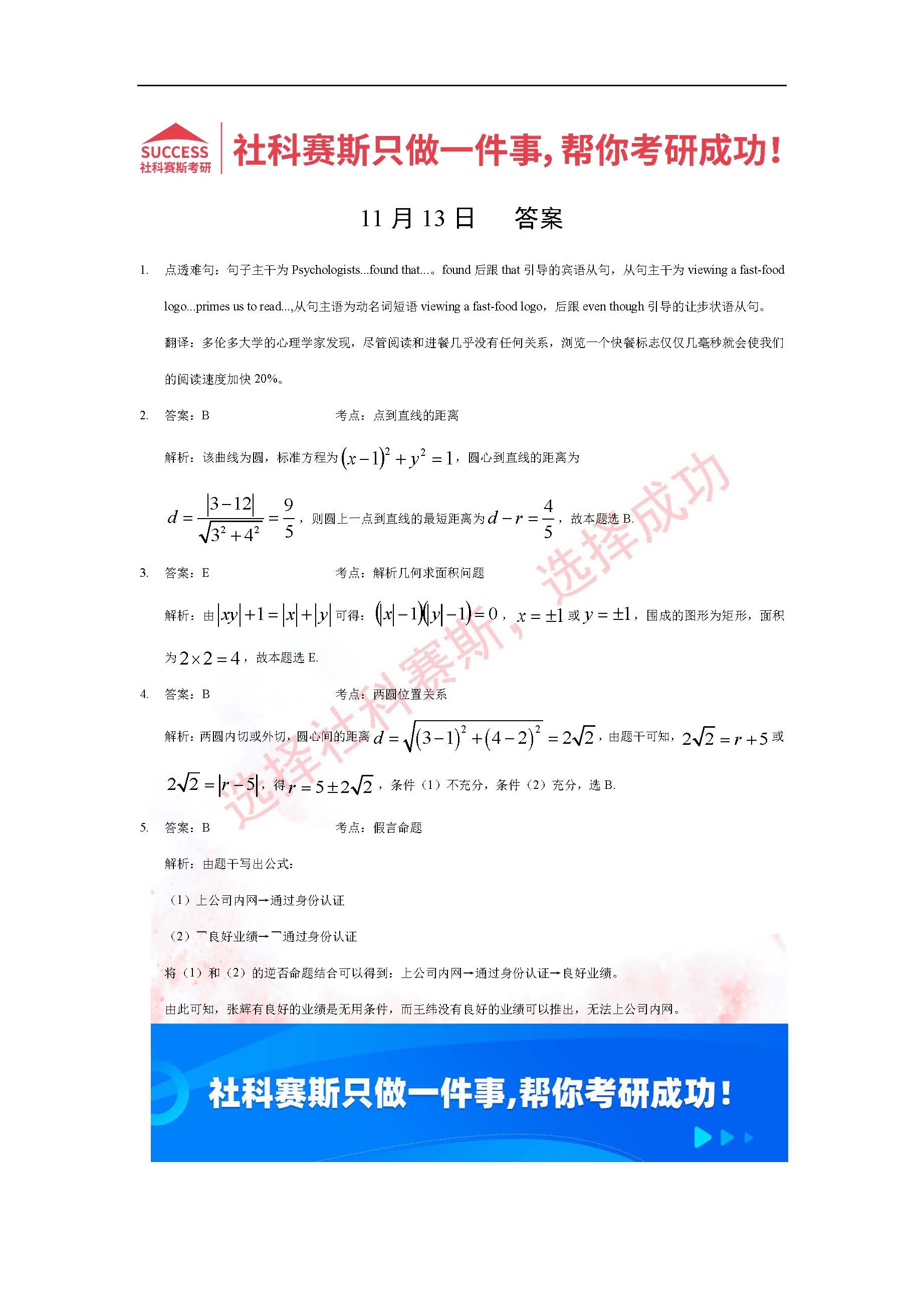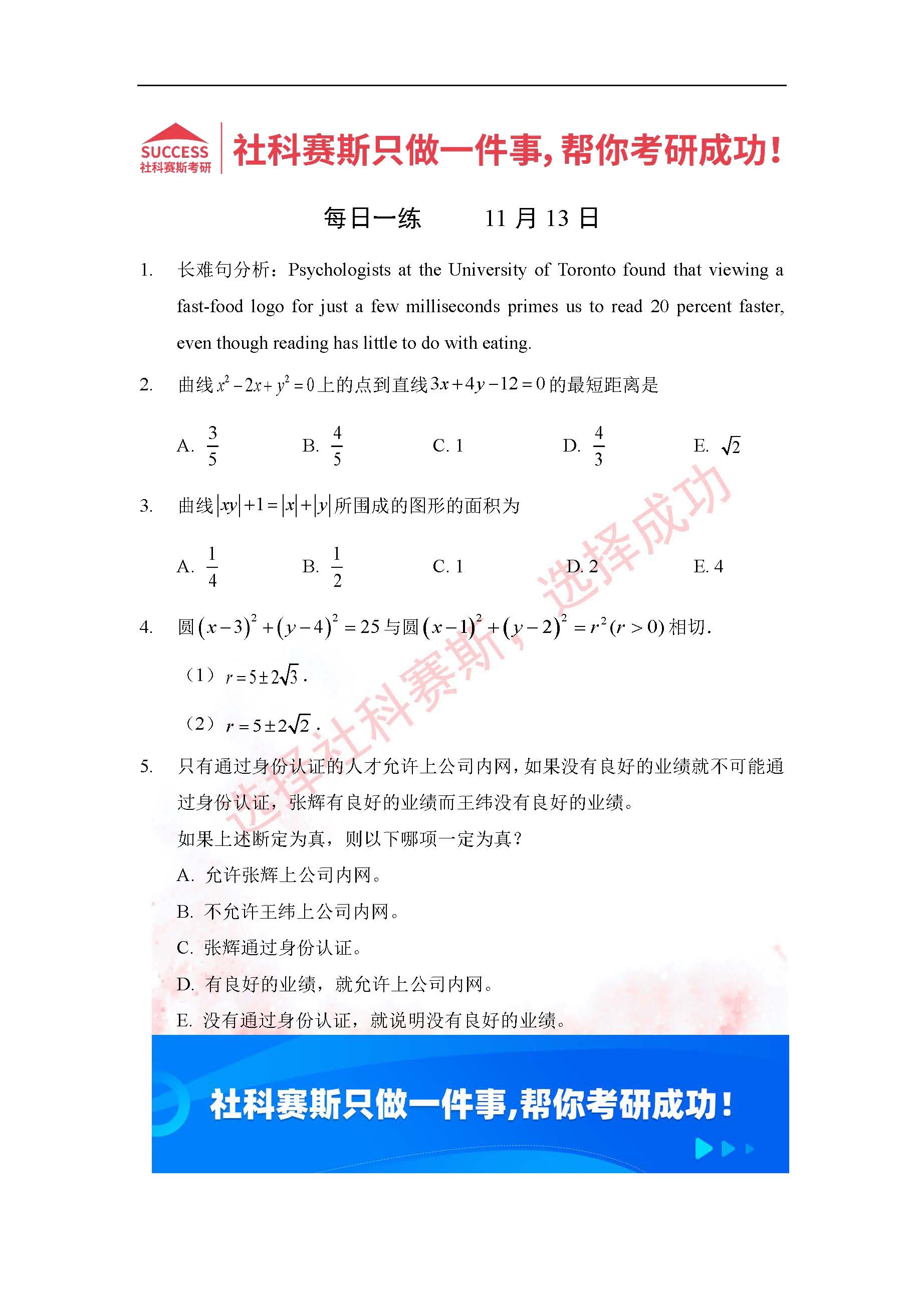 導(dǎo)讀:考研是一場(chǎng)持久戰(zhàn),保持良好的學(xué)習(xí)習(xí)慣,是能確保復(fù)習(xí)高效的關(guān)鍵。今天社科賽斯MBA備考網(wǎng)小編整理了“2022管理類聯(lián)考11月13日每日一練及答案”的內(nèi)容,希望能對(duì)廣大考生有所幫助。