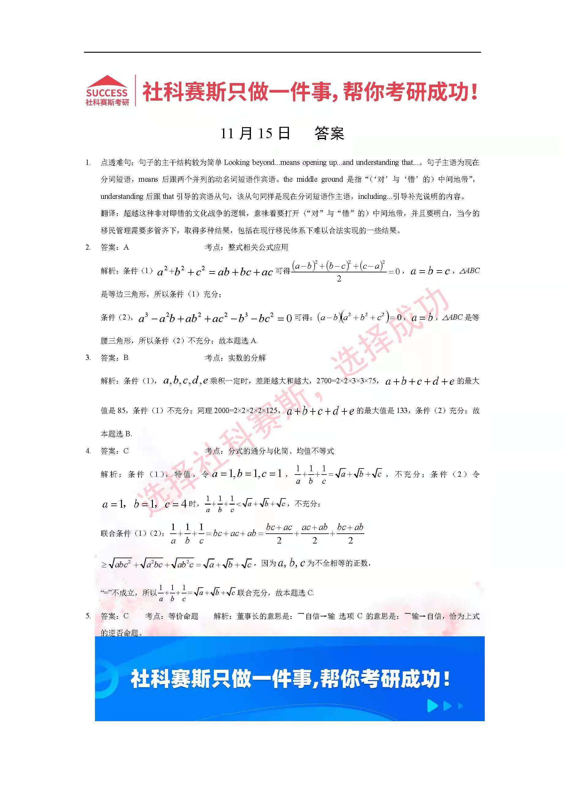 首頁> 管理類聯(lián)考每日一練 > 2022管理類聯(lián)考11月15日每日一練及答案