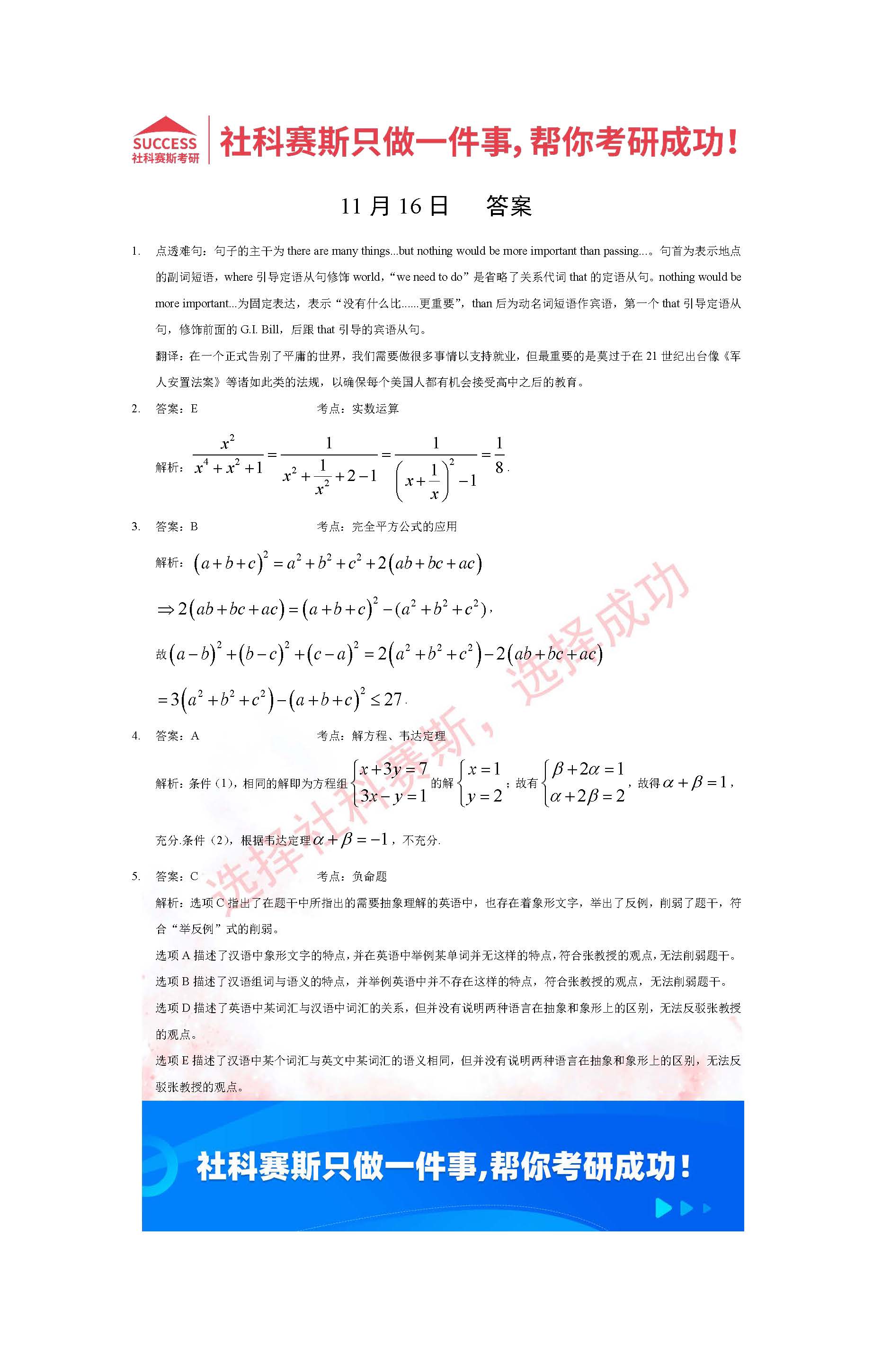首頁> 管理類聯(lián)考每日一練 > 2022管理類聯(lián)考11月16日每日一練及答案