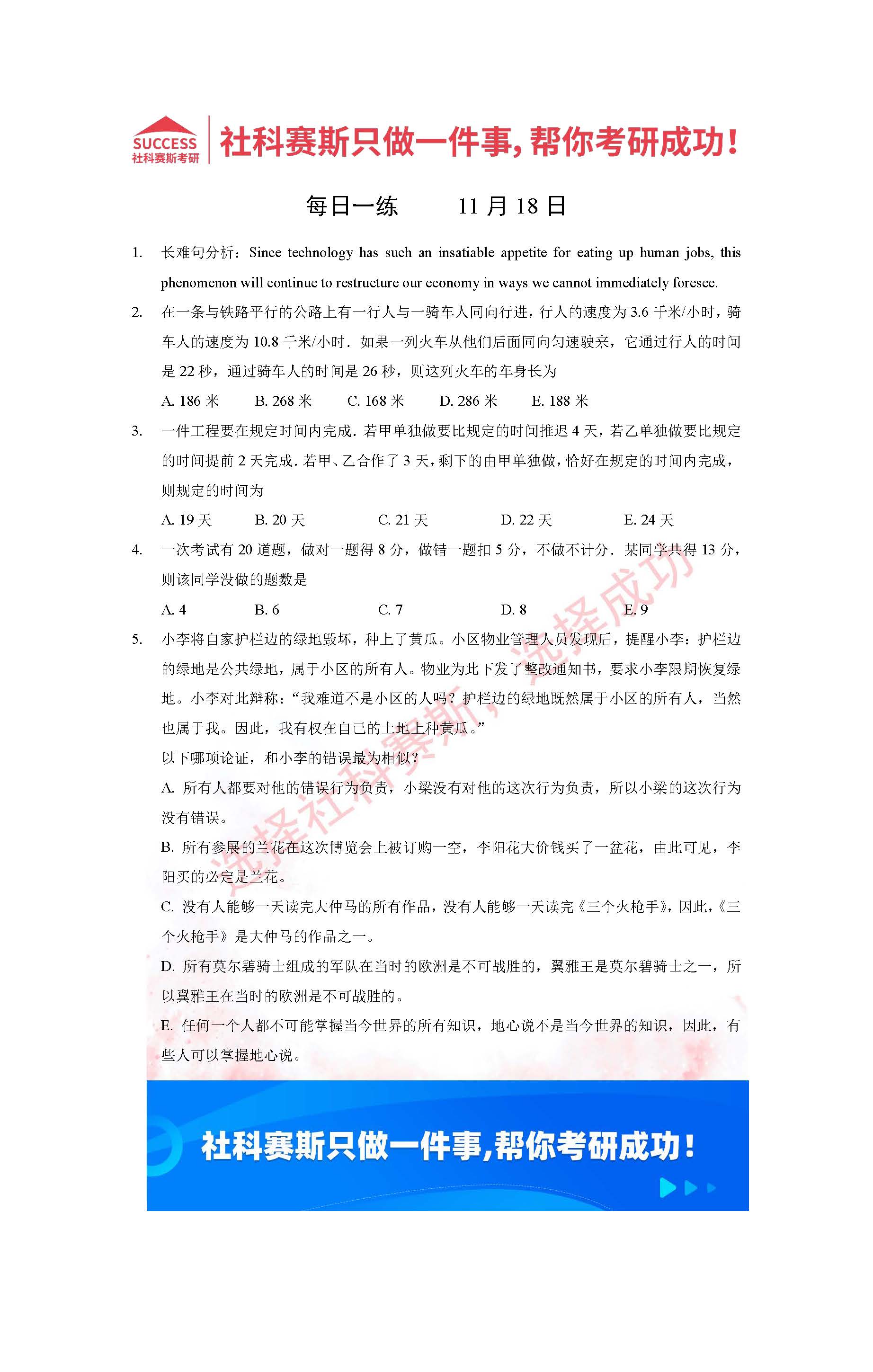 首頁> 管理類聯(lián)考每日一練 > 2022管理類聯(lián)考11月18日每日一練及答案