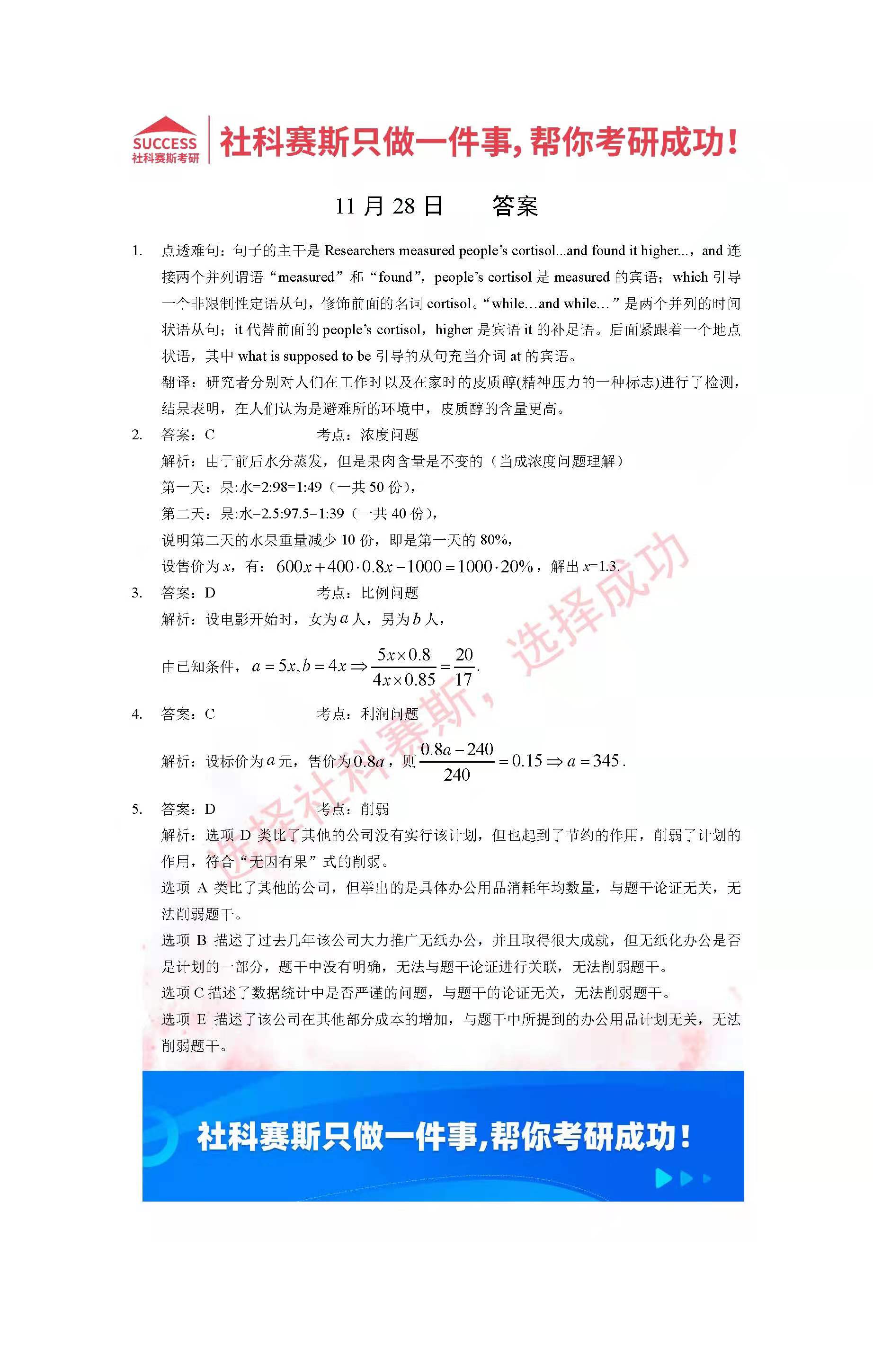 首頁> 管理類聯(lián)考每日一練 > 2022管理類聯(lián)考11月28日每日一練及答案