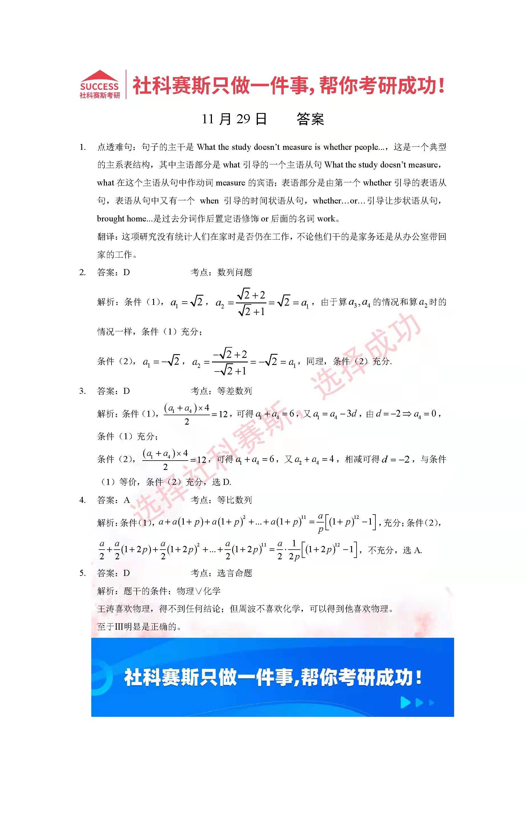 導(dǎo)讀:考研是一場持久戰(zhàn),保持良好的學(xué)習(xí)習(xí)慣,是能確保復(fù)習(xí)高效的關(guān)鍵。今天社科賽斯MBA備考網(wǎng)小編整理了“2022管理類聯(lián)考11月29日每日一練及答案”的內(nèi)容,希望能對廣大考生有所幫助。