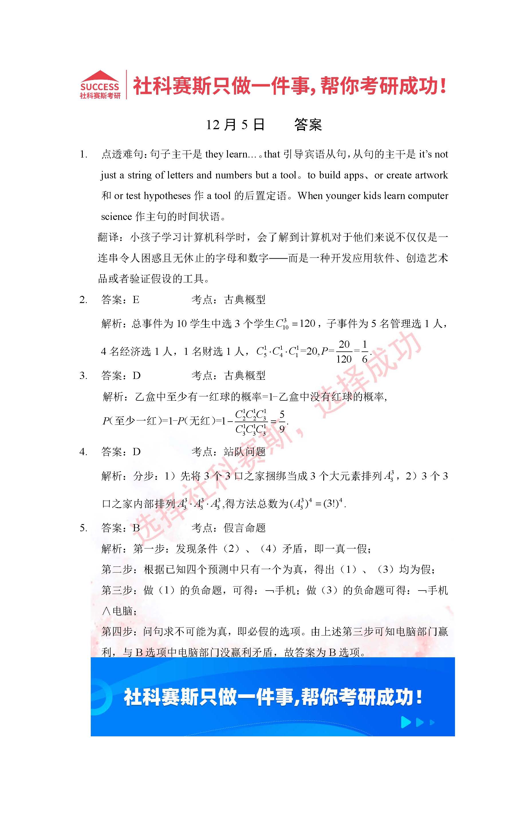 首頁> 管理類聯(lián)考每日一練 > 2022管理類聯(lián)考12月5日每日一練及答案