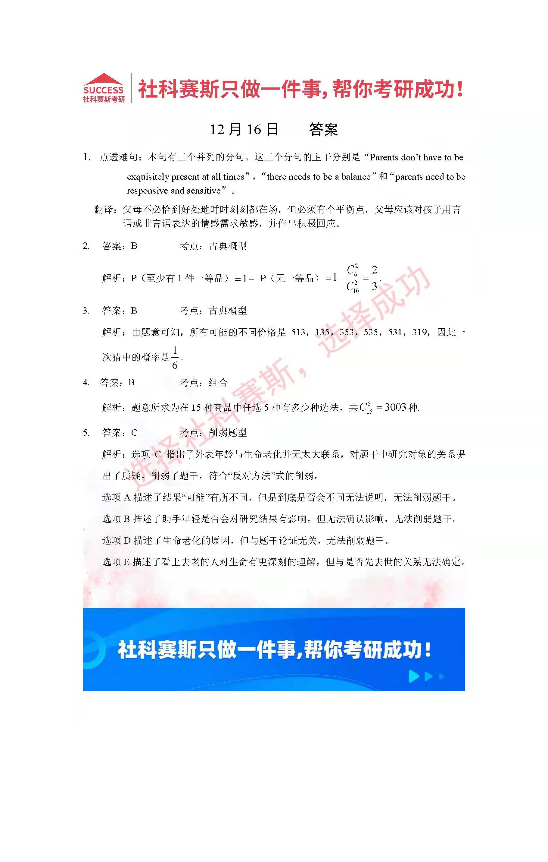 導(dǎo)讀:考研是一場持久戰(zhàn),保持良好的學(xué)習(xí)習(xí)慣,是能確保復(fù)習(xí)高效的關(guān)鍵。今天社科賽斯MBA備考網(wǎng)小編整理了“2022管理類聯(lián)考12月16日每日一練及答案”的內(nèi)容,希望能對廣大考生有所幫助。