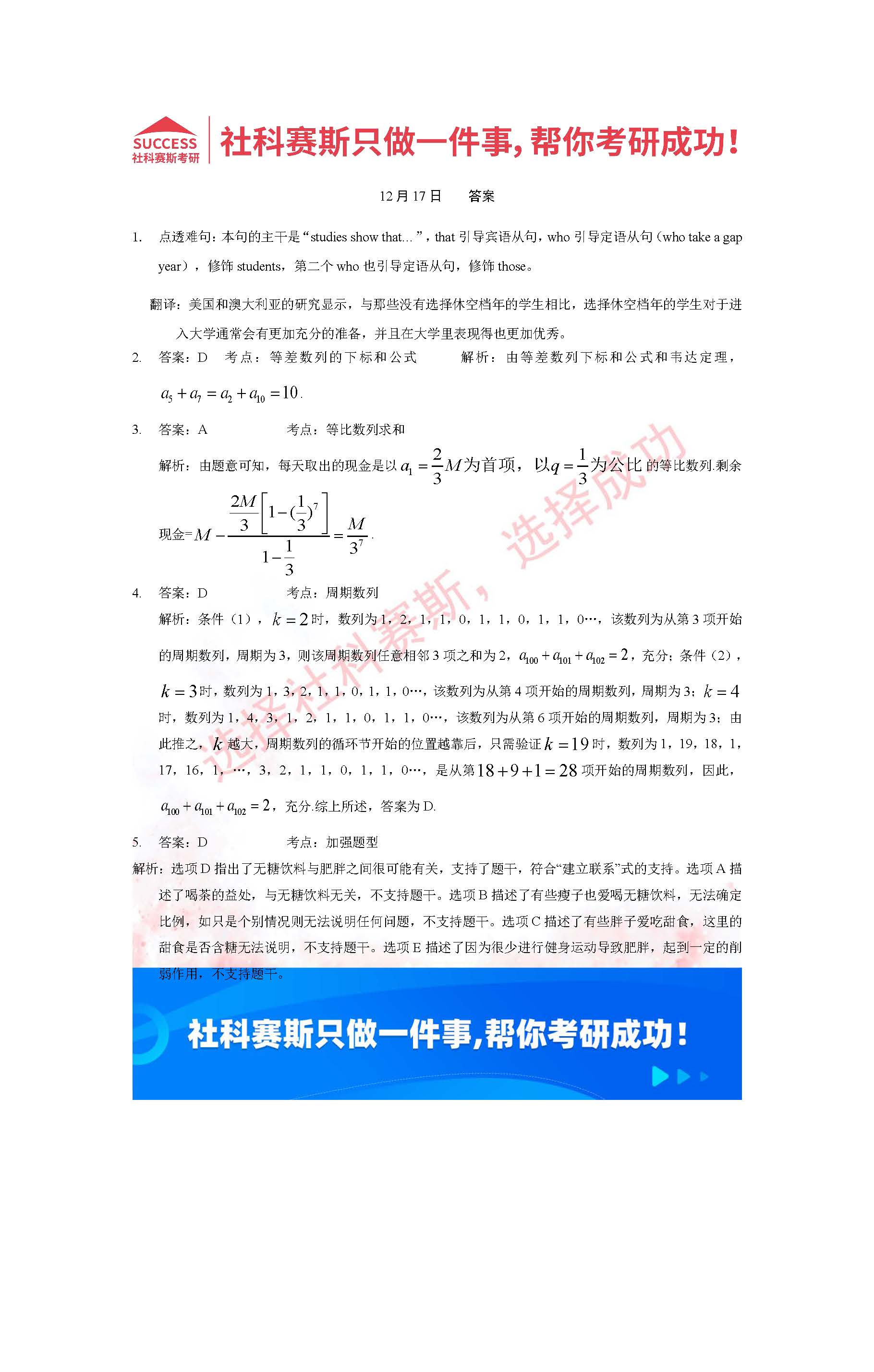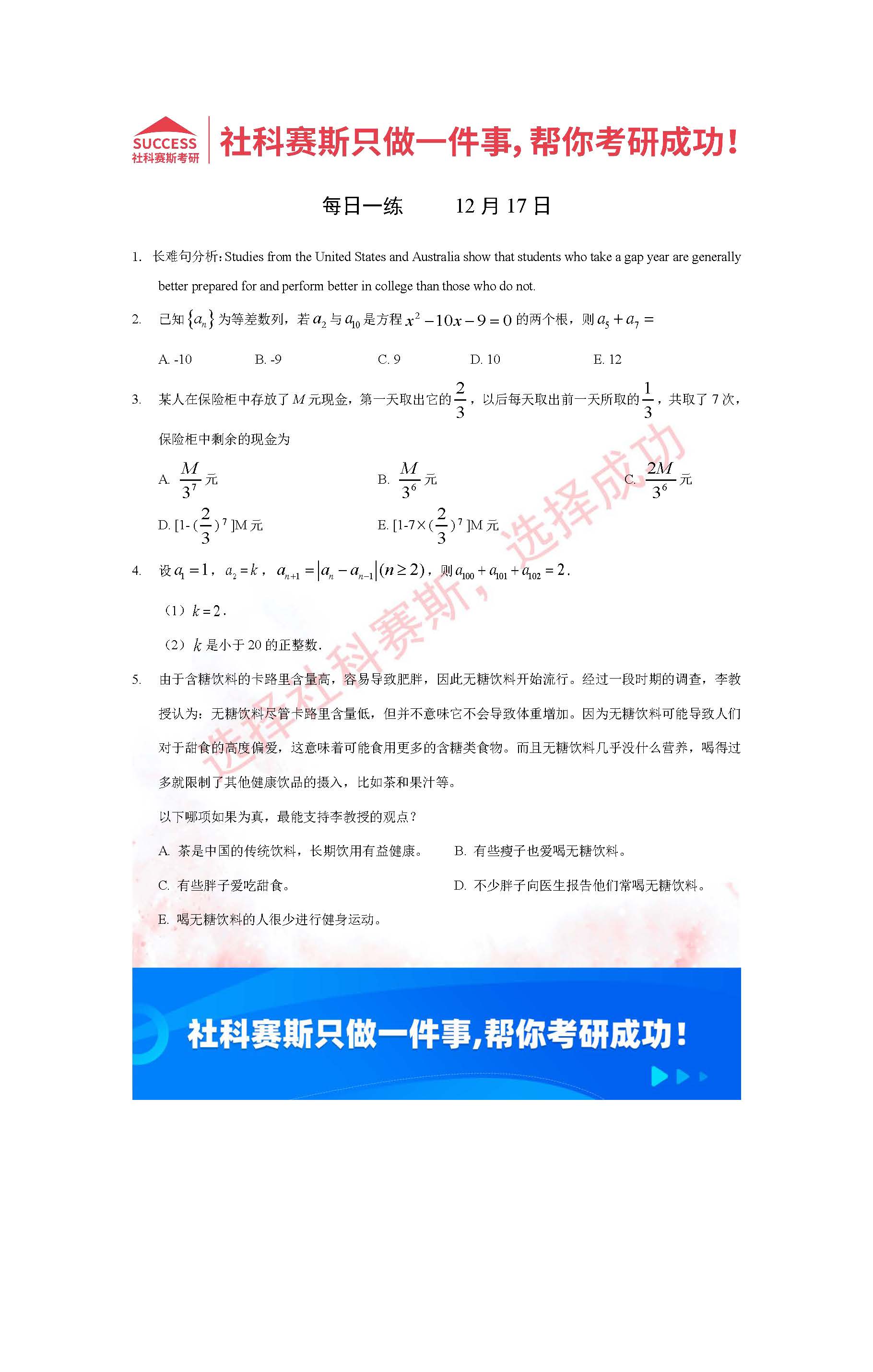 導(dǎo)讀:考研是一場(chǎng)持久戰(zhàn),保持良好的學(xué)習(xí)習(xí)慣,是能確保復(fù)習(xí)高效的關(guān)鍵。今天社科賽斯MBA備考網(wǎng)小編整理了“2022管理類(lèi)聯(lián)考12月17日每日一練及答案”的內(nèi)容,希望能對(duì)廣大考生有所幫助。