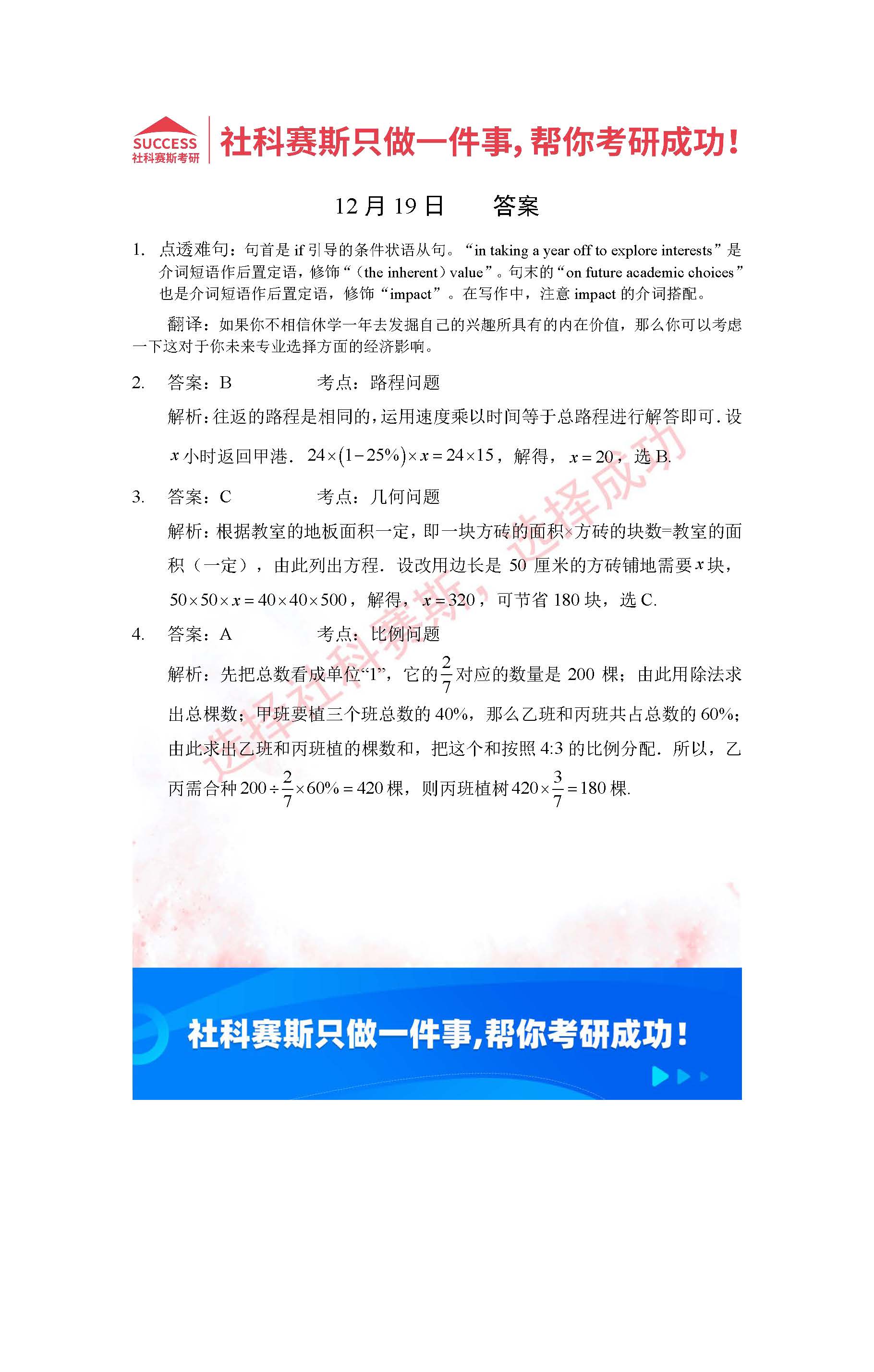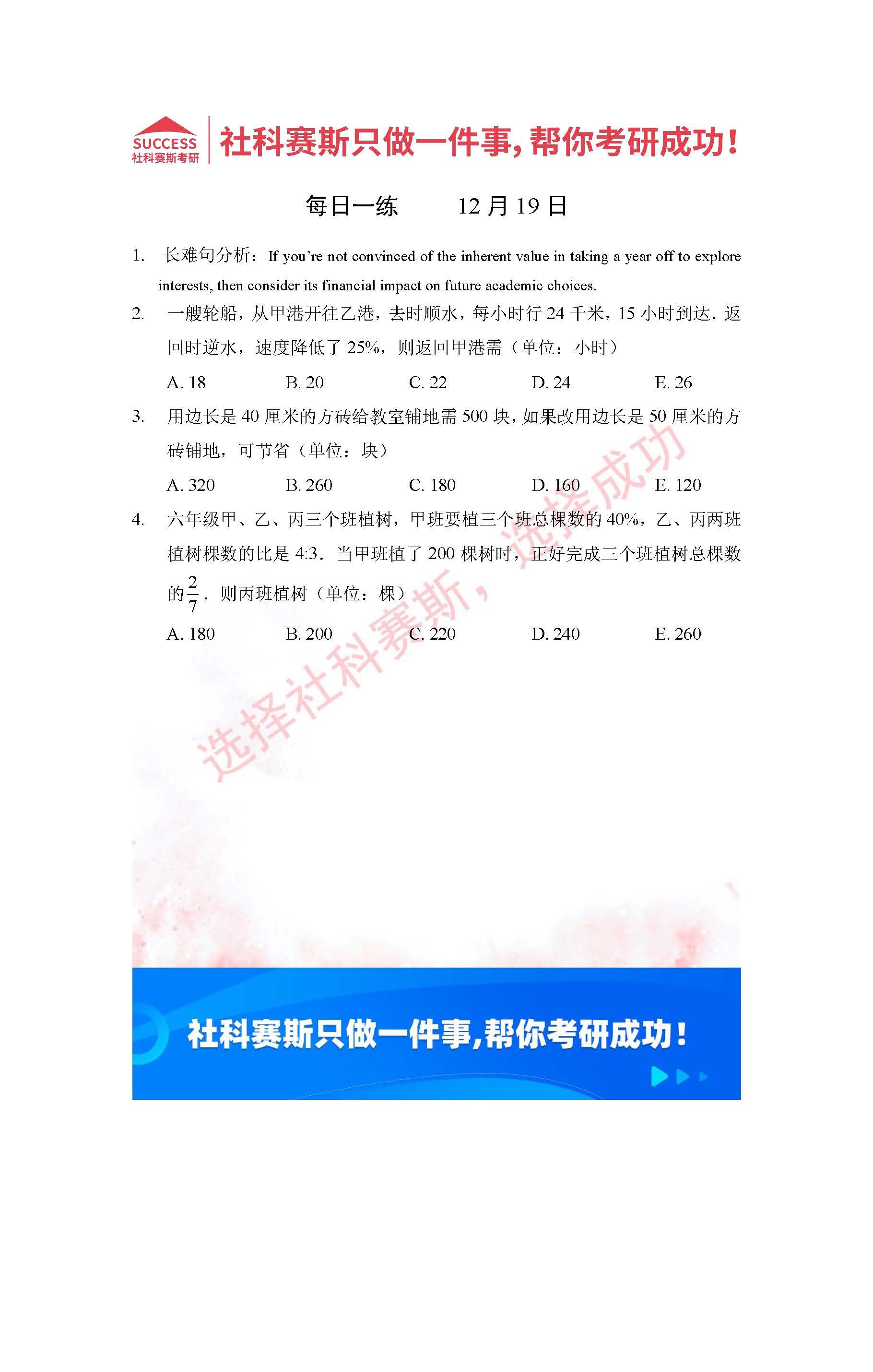 導(dǎo)讀:考研是一場持久戰(zhàn),保持良好的學(xué)習(xí)習(xí)慣,是能確保復(fù)習(xí)高效的關(guān)鍵。今天社科賽斯MBA備考網(wǎng)小編整理了“2022管理類聯(lián)考12月19日每日一練及答案”的內(nèi)容,希望能對廣大考生有所幫助。