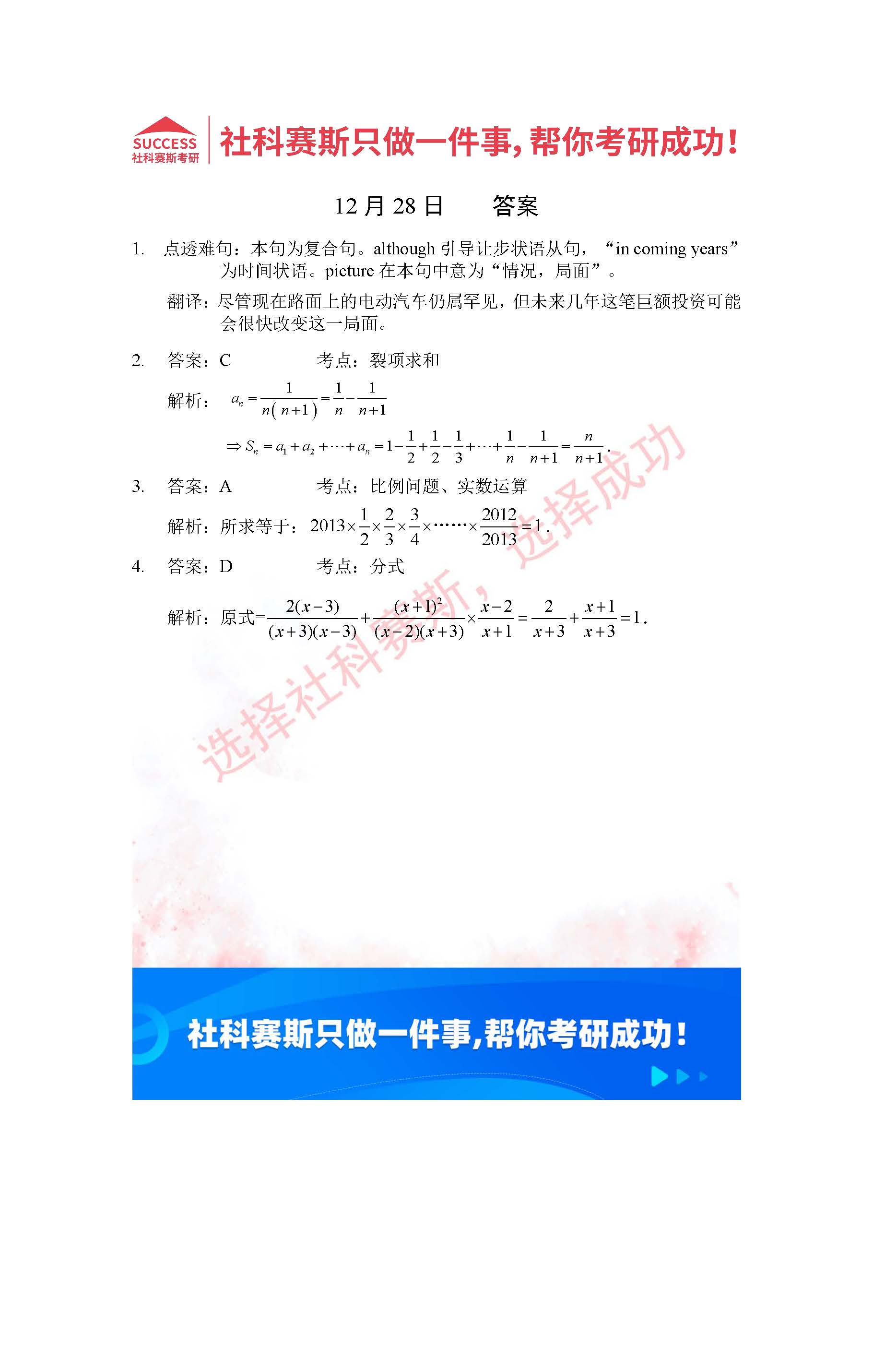 導(dǎo)讀:考研是一場(chǎng)持久戰(zhàn),保持良好的學(xué)習(xí)習(xí)慣,是能確保復(fù)習(xí)高效的關(guān)鍵。今天社科賽斯MBA備考網(wǎng)小編整理了“2022管理類聯(lián)考12月28日每日一練及答案”的內(nèi)容,希望能對(duì)廣大考生有所幫助。