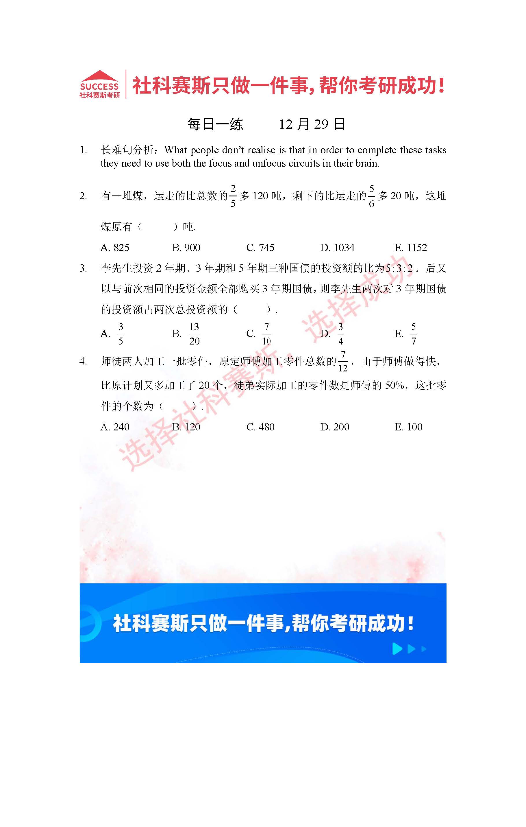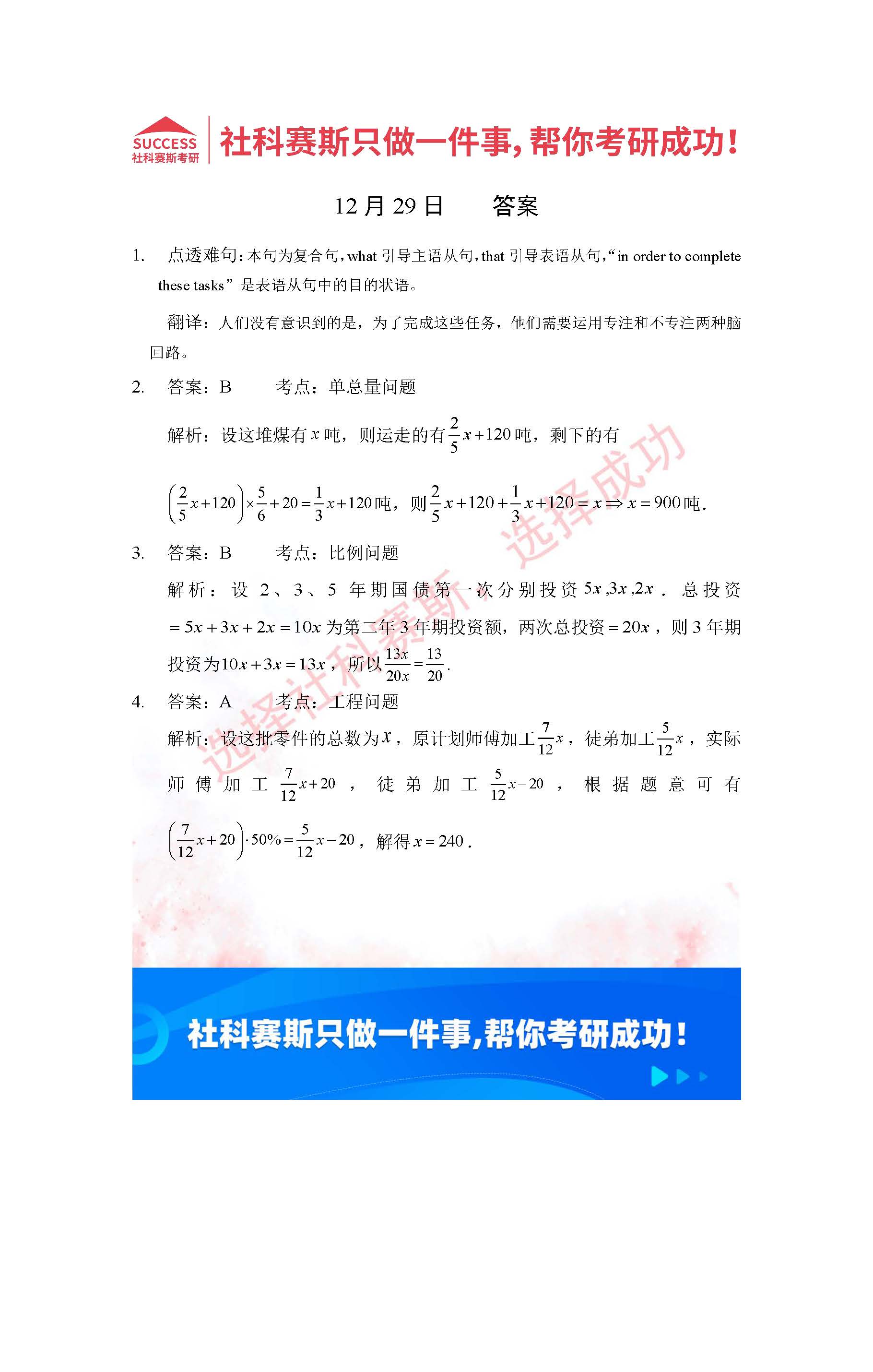 導(dǎo)讀:考研是一場持久戰(zhàn),保持良好的學(xué)習(xí)習(xí)慣,是能確保復(fù)習(xí)高效的關(guān)鍵。今天社科賽斯MBA備考網(wǎng)小編整理了“2022管理類聯(lián)考12月29日每日一練及答案”的內(nèi)容,希望能對廣大考生有所幫助。
