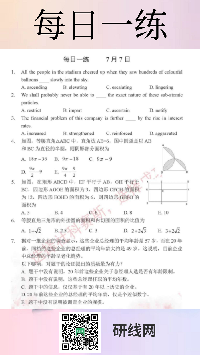 以上就是今日每日一練的全部?jī)?nèi)容,跟著每日一練,考研輕松復(fù)習(xí)!更多考試練習(xí),盡在“每日一練”欄目。