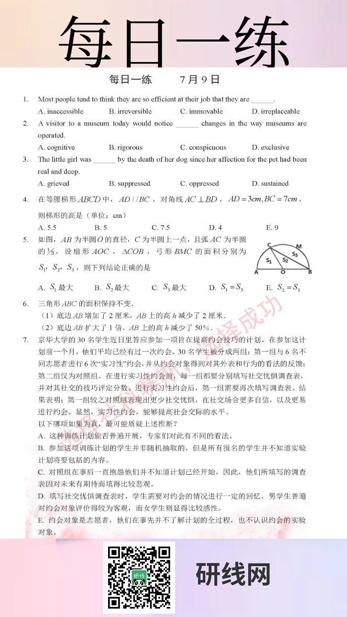 以上就是今日每日一練的全部?jī)?nèi)容,跟著每日一練,考研輕松復(fù)習(xí)!更多考試練習(xí),盡在“每日一練”欄目。