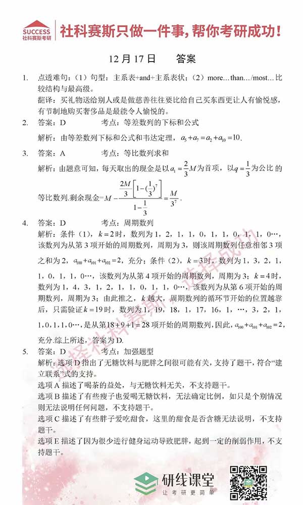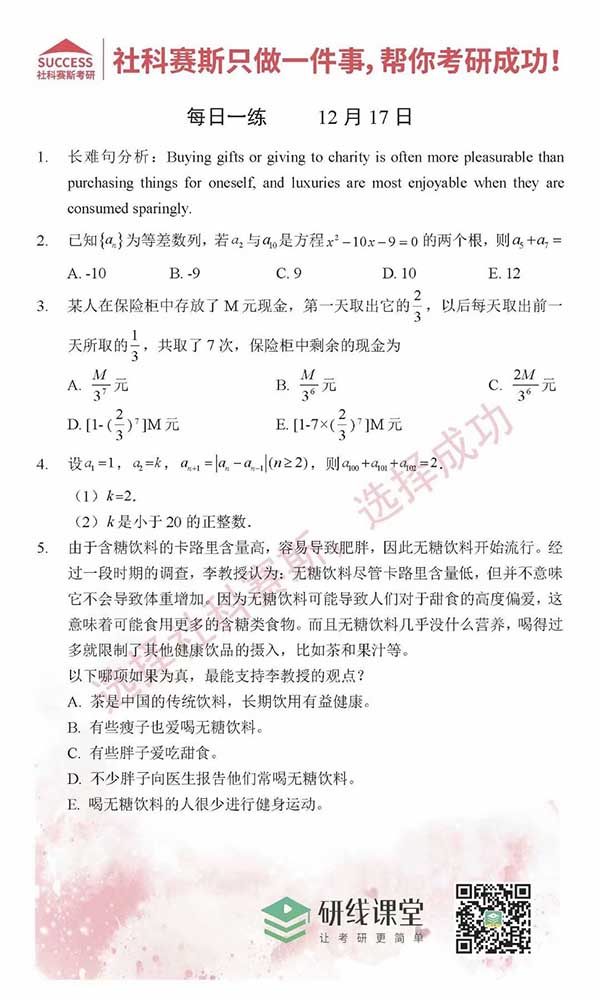 首頁> 管理類聯(lián)考每日一練 > 2020管理類聯(lián)考12月17日每日一練及答案