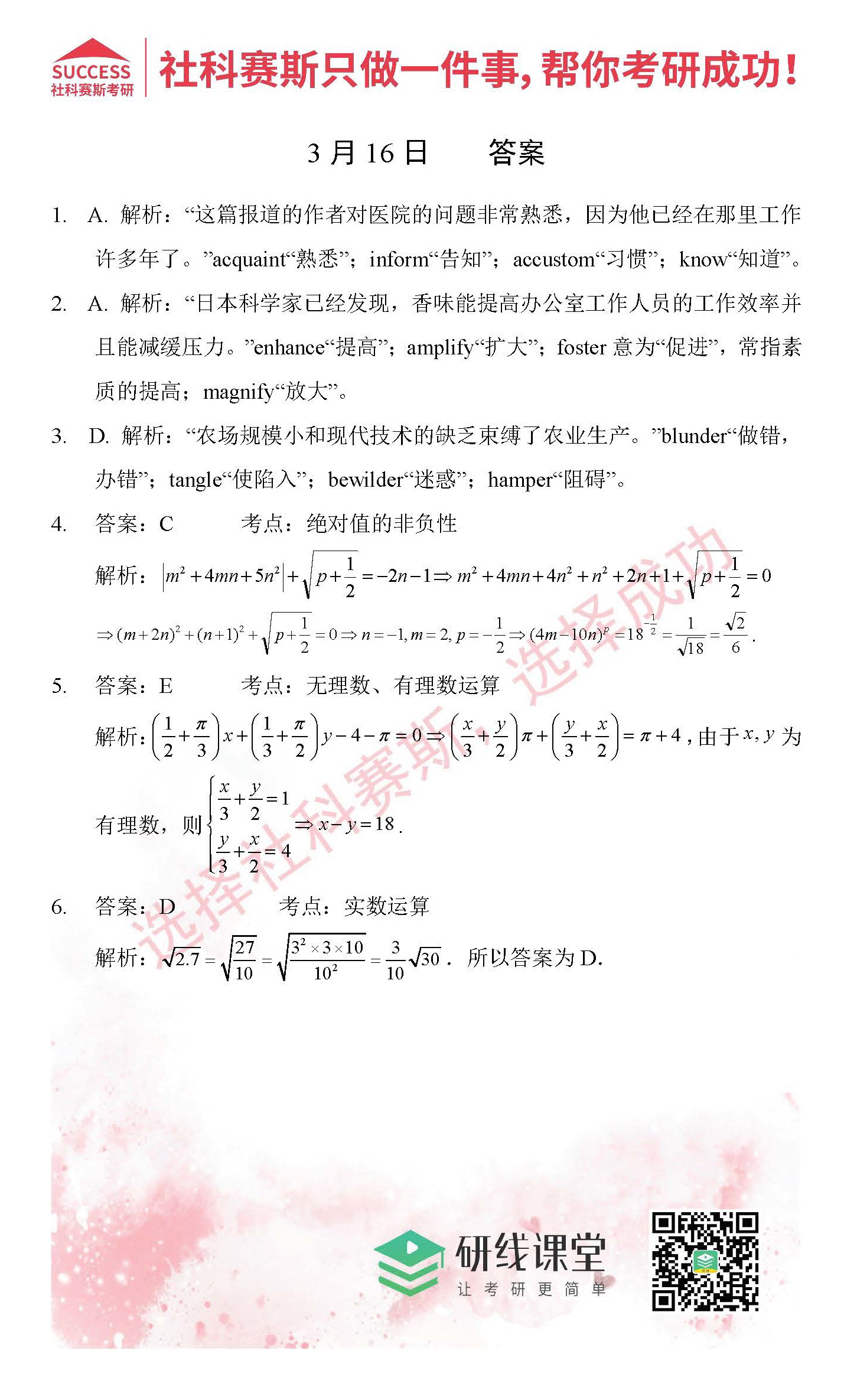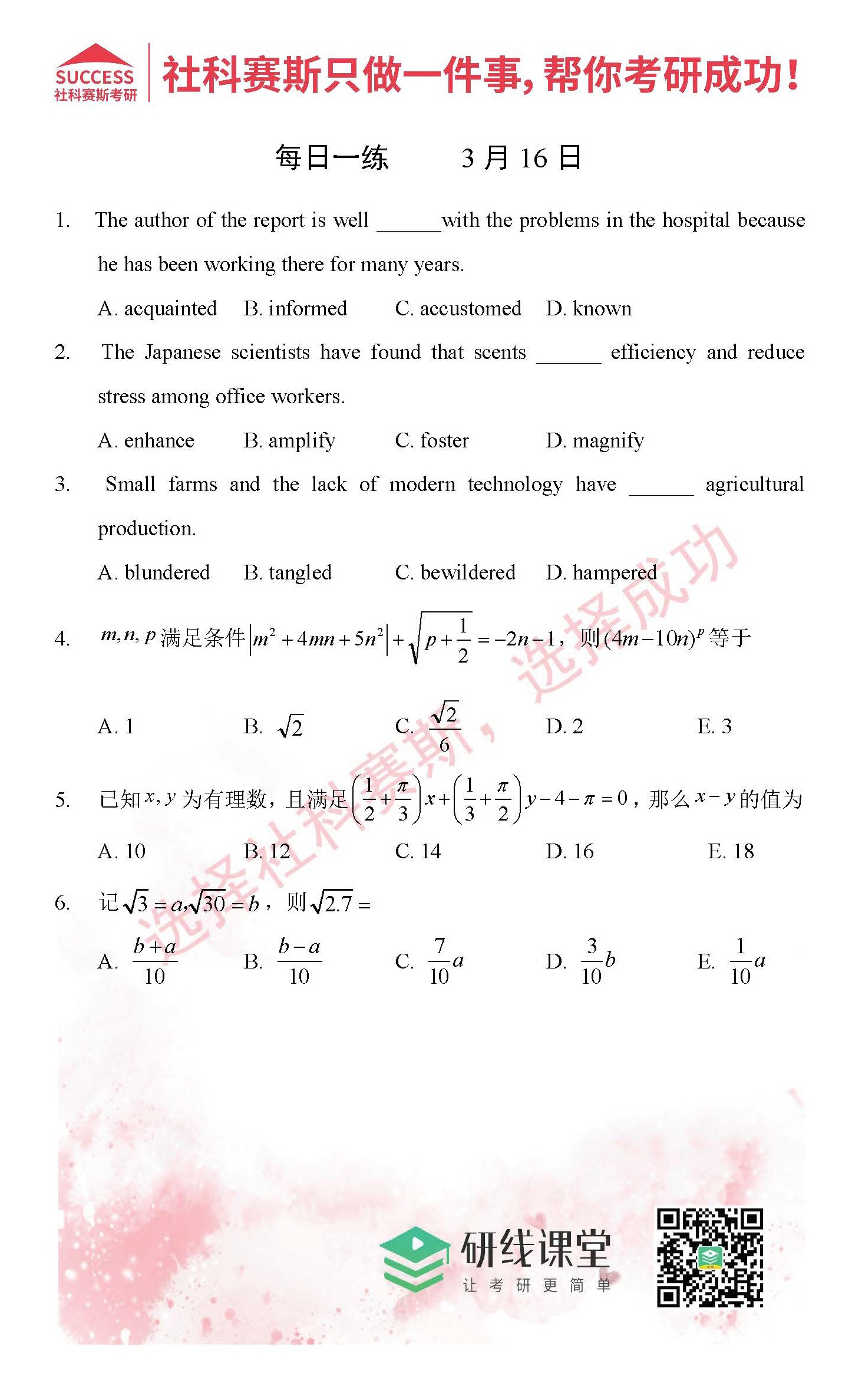 考研是一場持久戰(zhàn),保持良好的學(xué)習(xí)習(xí)慣,是能確保復(fù)習(xí)高效的關(guān)鍵。MBA備考網(wǎng)小編整理了每日一練,希望能對(duì)廣大考生有所幫助。