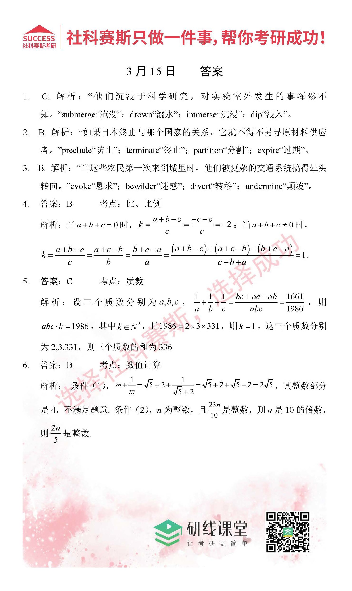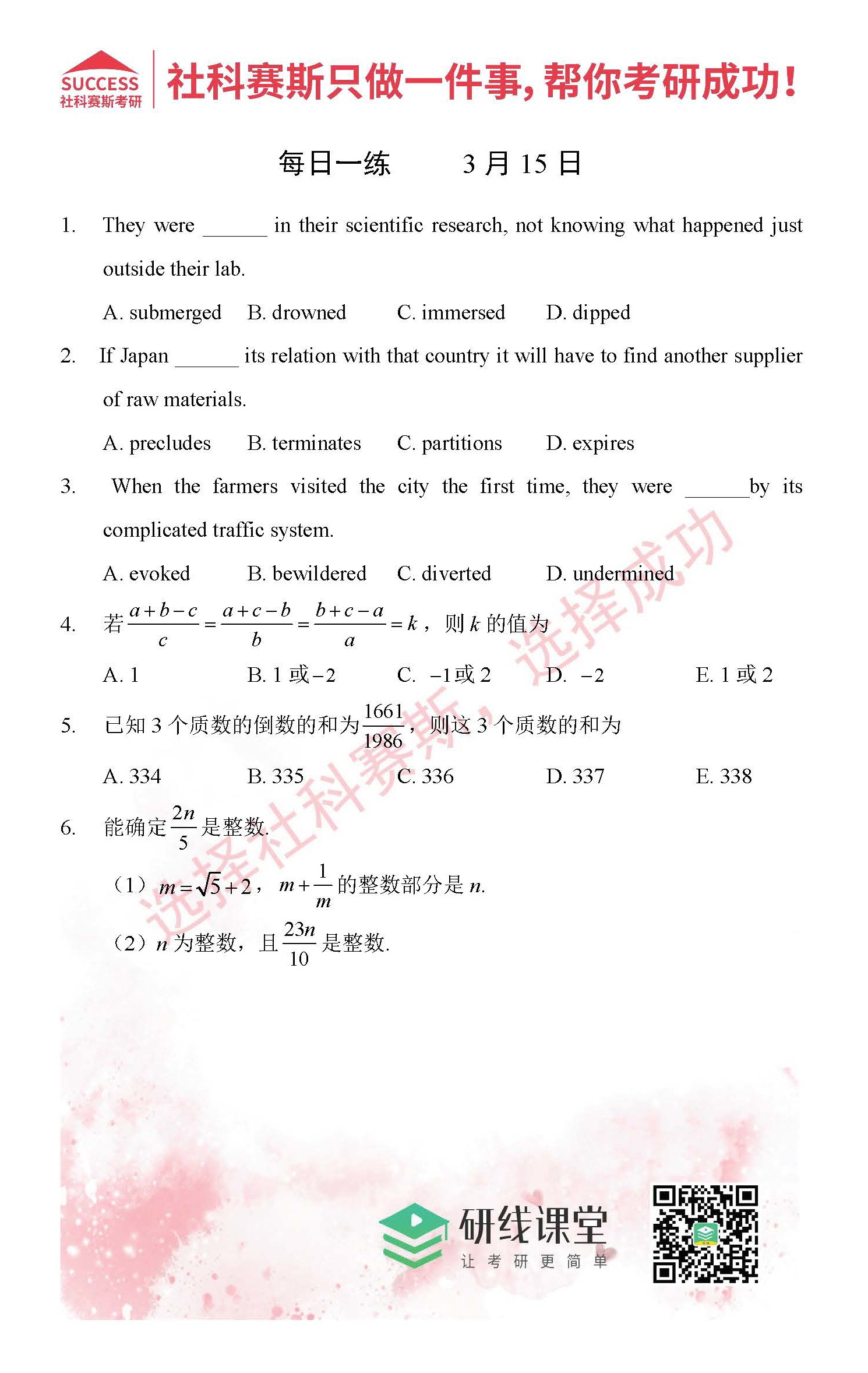 考研是一場(chǎng)持久戰(zhàn),保持良好的學(xué)習(xí)習(xí)慣,是能確保復(fù)習(xí)高效的關(guān)鍵。MBA備考網(wǎng)小編整理了每日一練,希望能對(duì)廣大考生有所幫助。