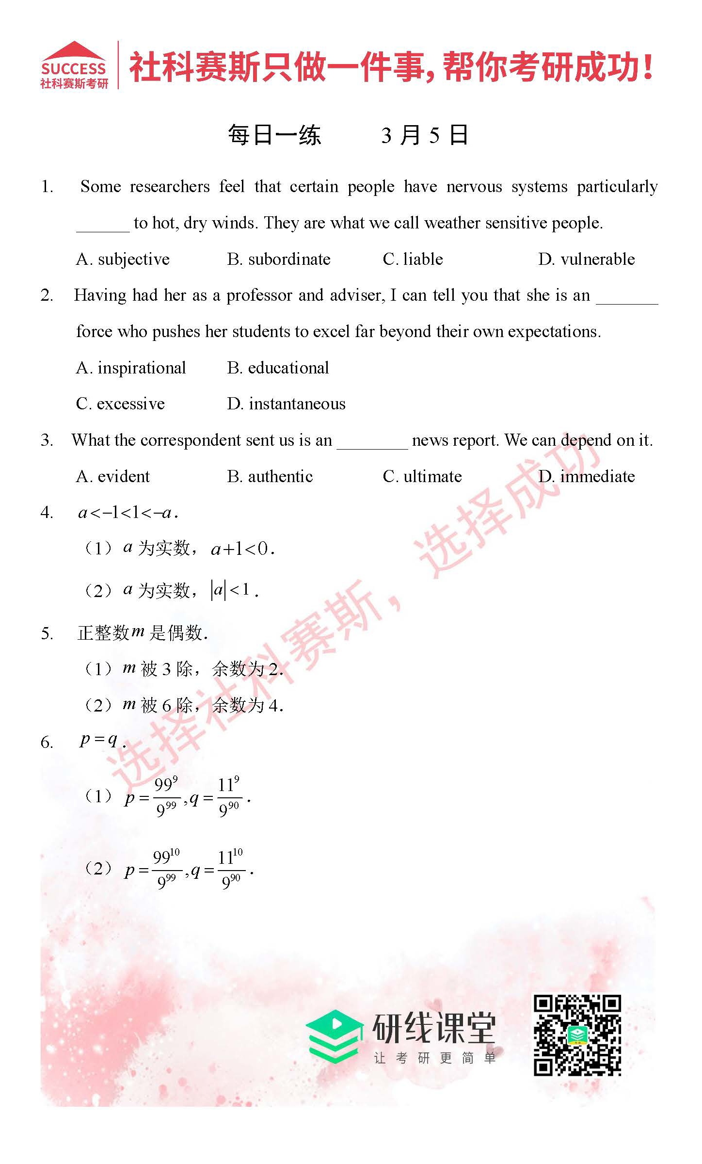 考研是一場(chǎng)持久戰(zhàn),保持良好的學(xué)習(xí)習(xí)慣,是能確保復(fù)習(xí)高效的關(guān)鍵。MBA備考網(wǎng)小編整理了每日一練,希望能對(duì)廣大考生有所幫助。