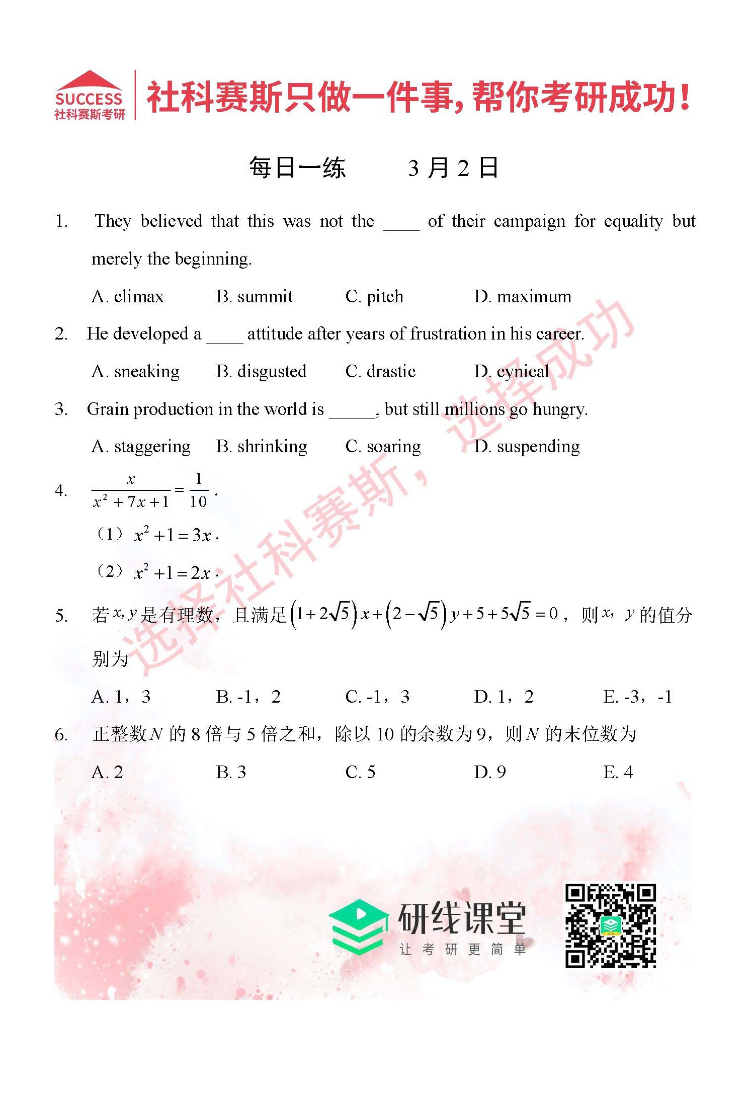 首頁> 管理類聯(lián)考每日一練 > 2021管理類聯(lián)考3月2日每日一練及答案