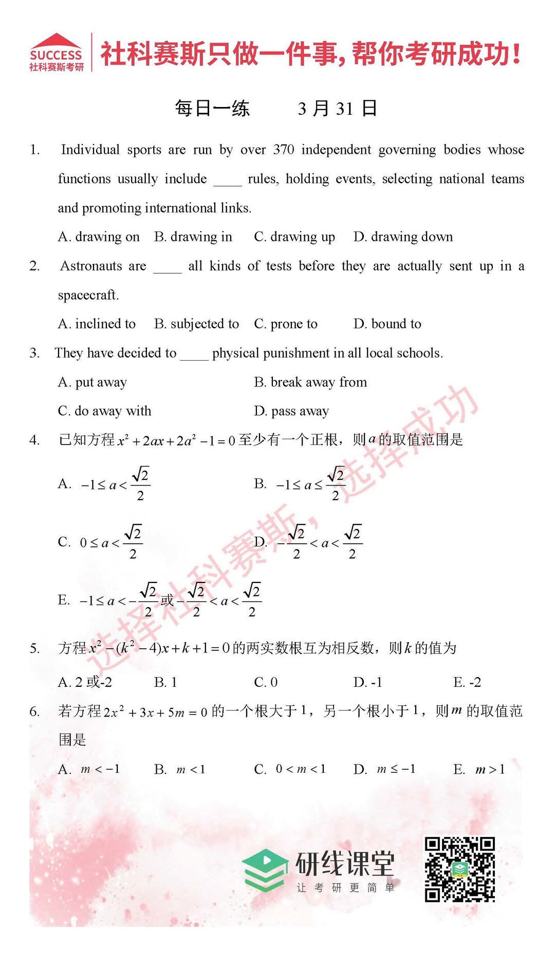 導(dǎo)讀:考研是一場(chǎng)持久戰(zhàn),保持良好的學(xué)習(xí)習(xí)慣,是能確保復(fù)習(xí)高效的關(guān)鍵。MBA備考網(wǎng)小編整理了每日一練,希望能對(duì)廣大考生有所幫助。
