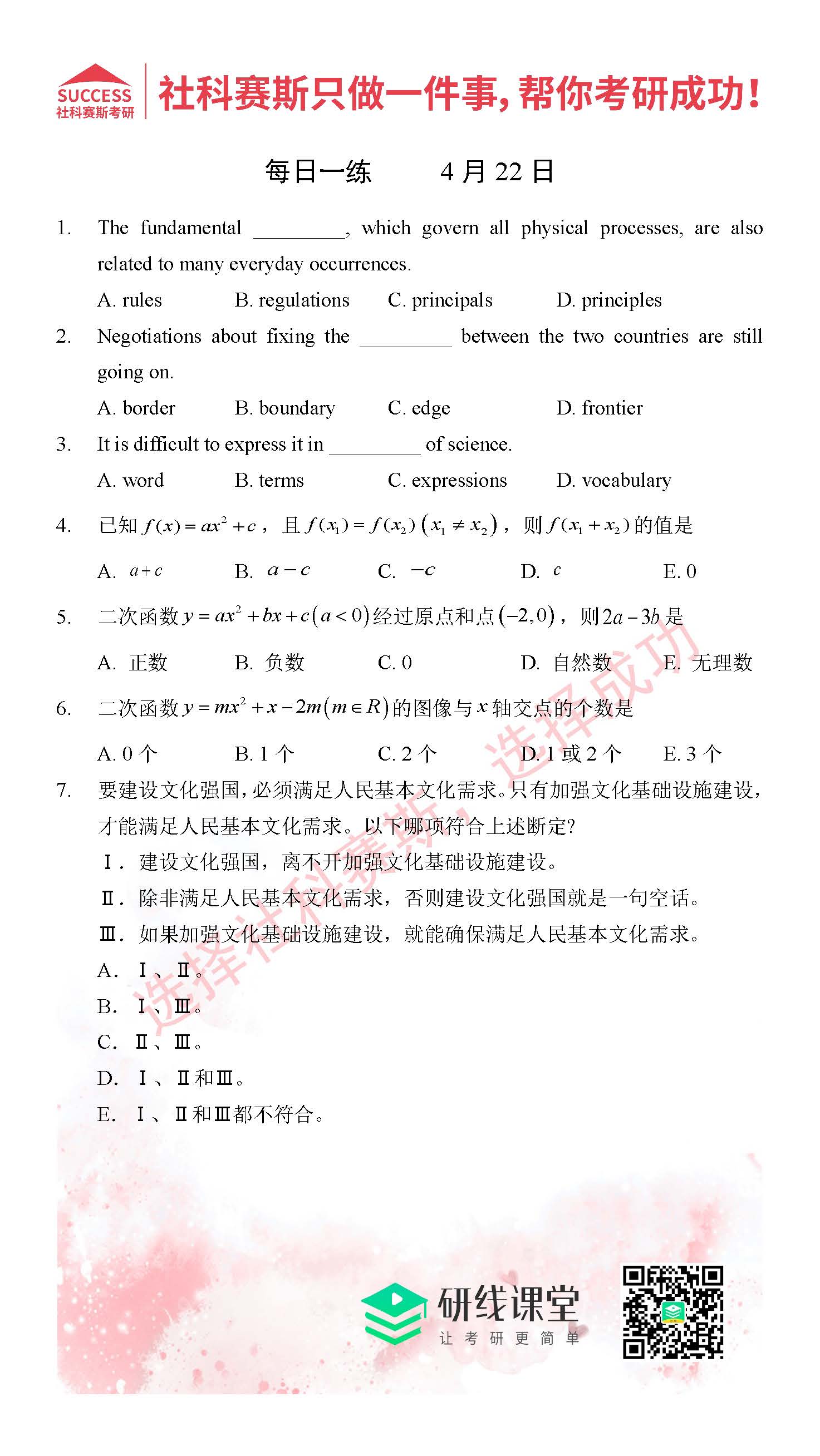 導(dǎo)讀:考研是一場持久戰(zhàn),保持良好的學(xué)習(xí)習(xí)慣,是能確保復(fù)習(xí)高效的關(guān)鍵。MBA備考網(wǎng)小編整理了管綜的每日一練,希望能對(duì)廣大考生有所幫助。