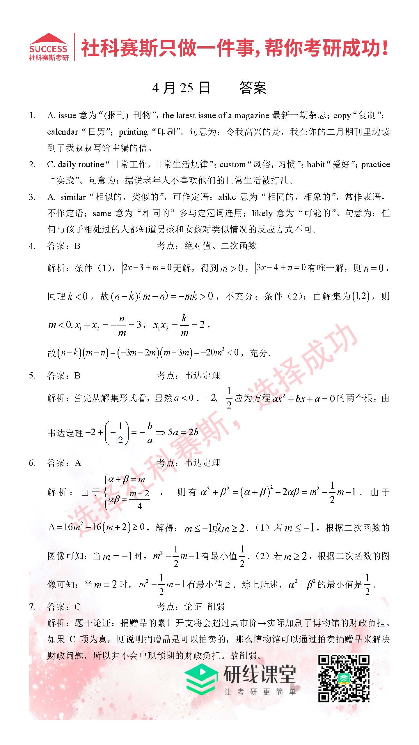 首頁> 管理類聯(lián)考每日一練 > 2021管理類聯(lián)考4月25日每日一練及答案