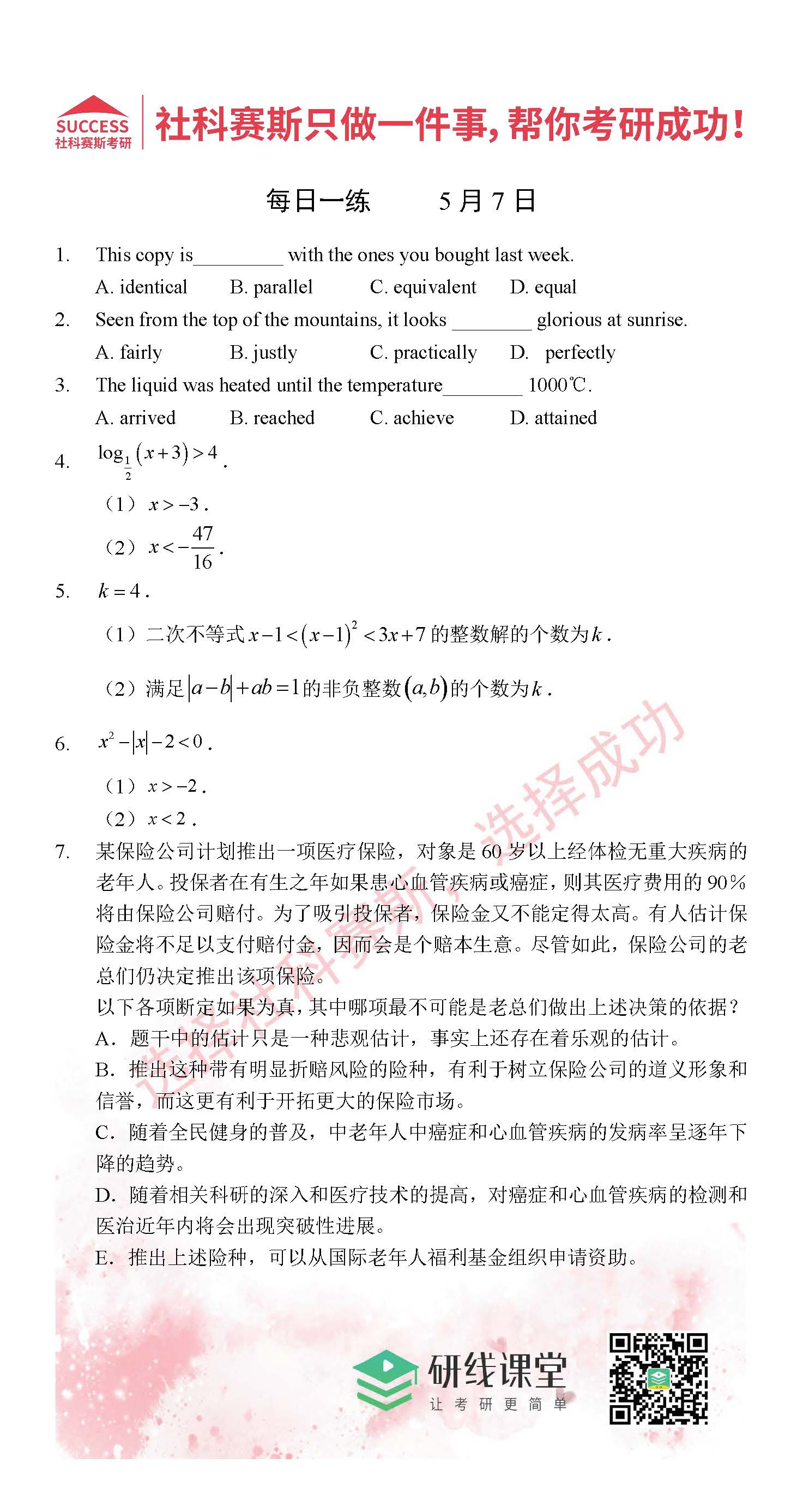 考研是一場持久戰(zhàn),保持良好的學(xué)習(xí)習(xí)慣,是能確保復(fù)習(xí)高效的關(guān)鍵。MBA備考網(wǎng)小編整理了管綜的每日一練,希望能對(duì)廣大考生有所幫助。
