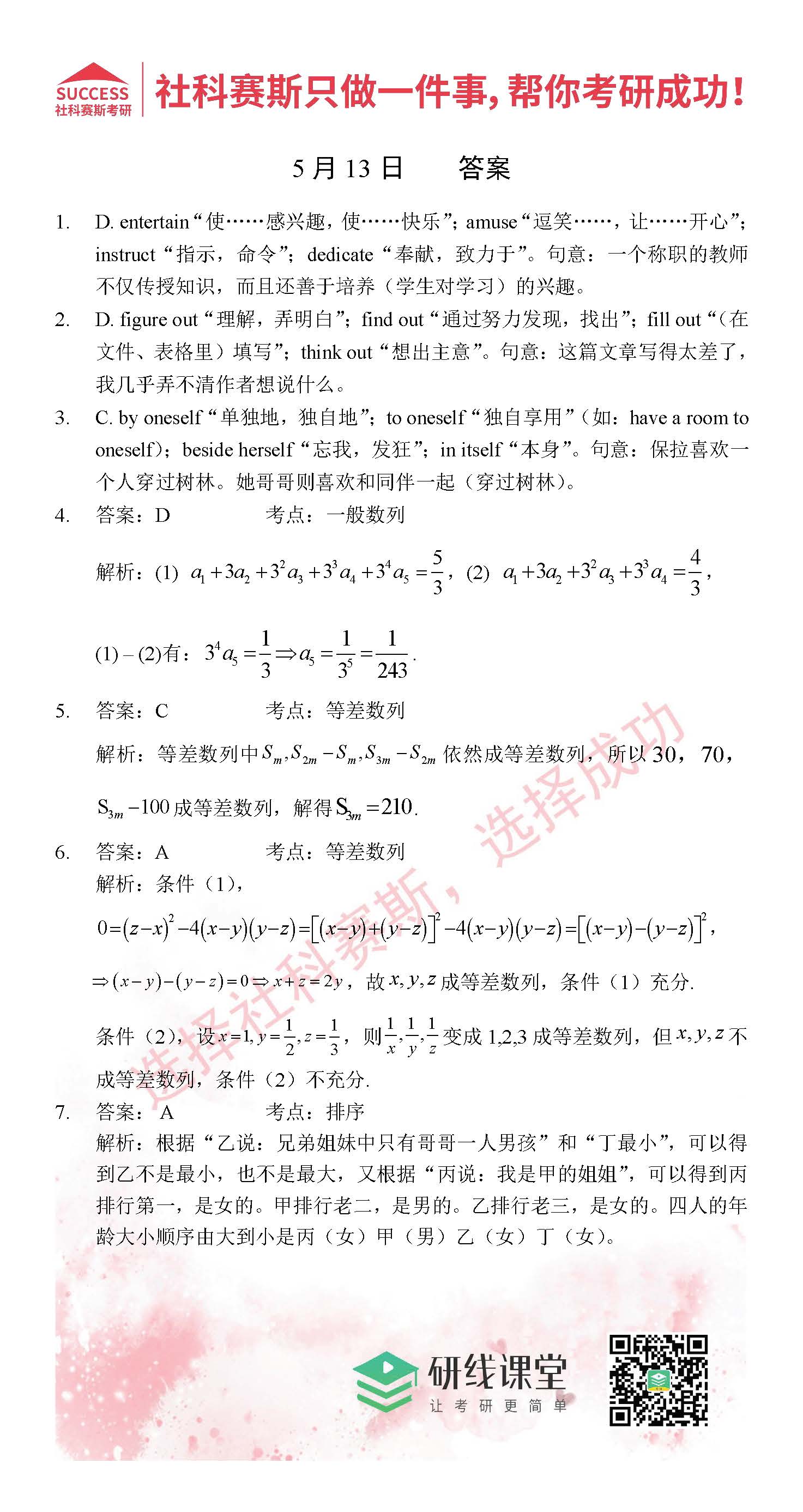 首頁> 管理類聯(lián)考每日一練 > 2021管理類聯(lián)考5月13日每日一練及答案