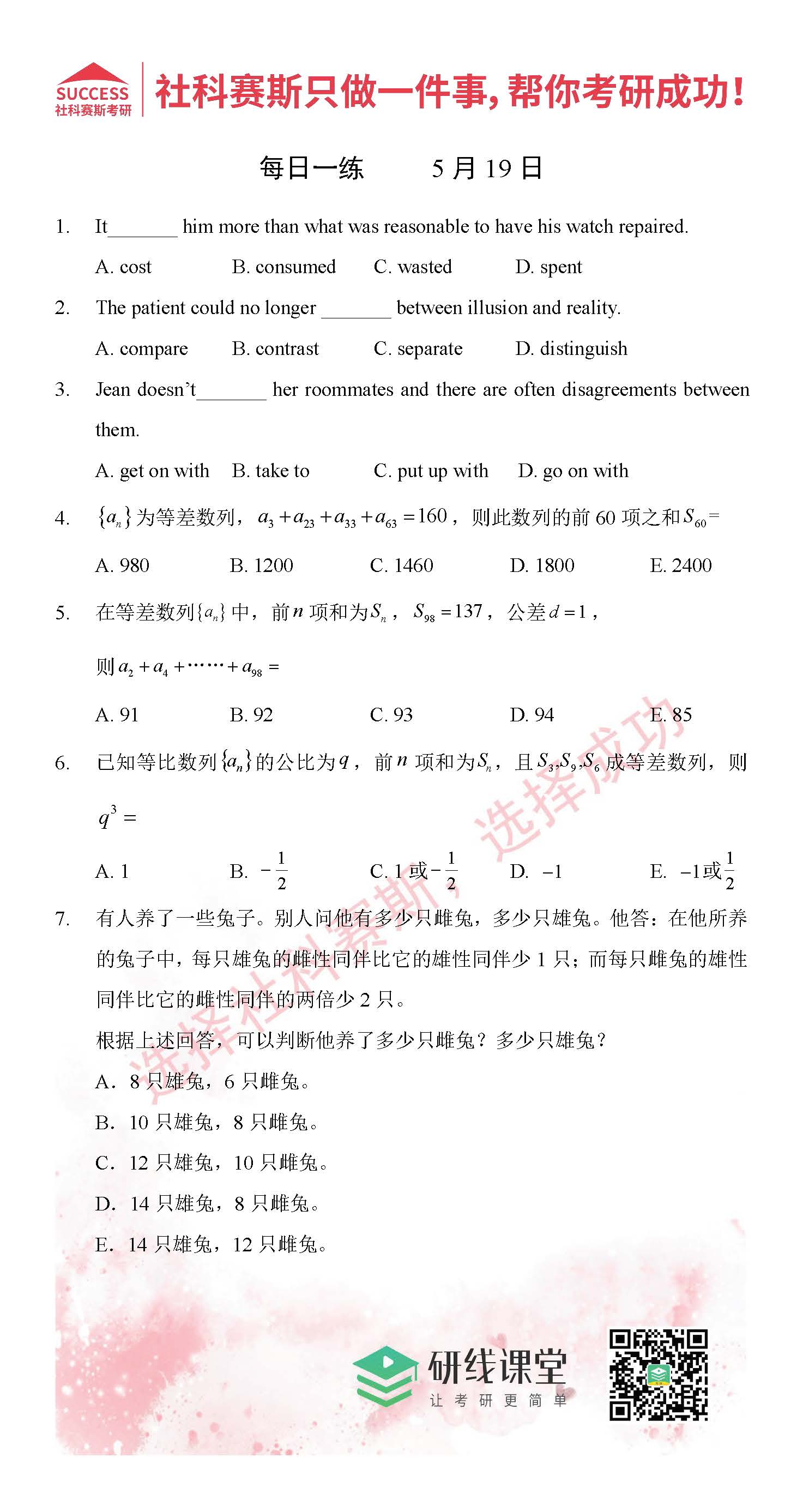 考研是一場持久戰(zhàn),保持良好的學習習慣,是能確保復習高效的關鍵。MBA備考網(wǎng)小編整理了管綜的每日一練,希望能對廣大考生有所幫助。