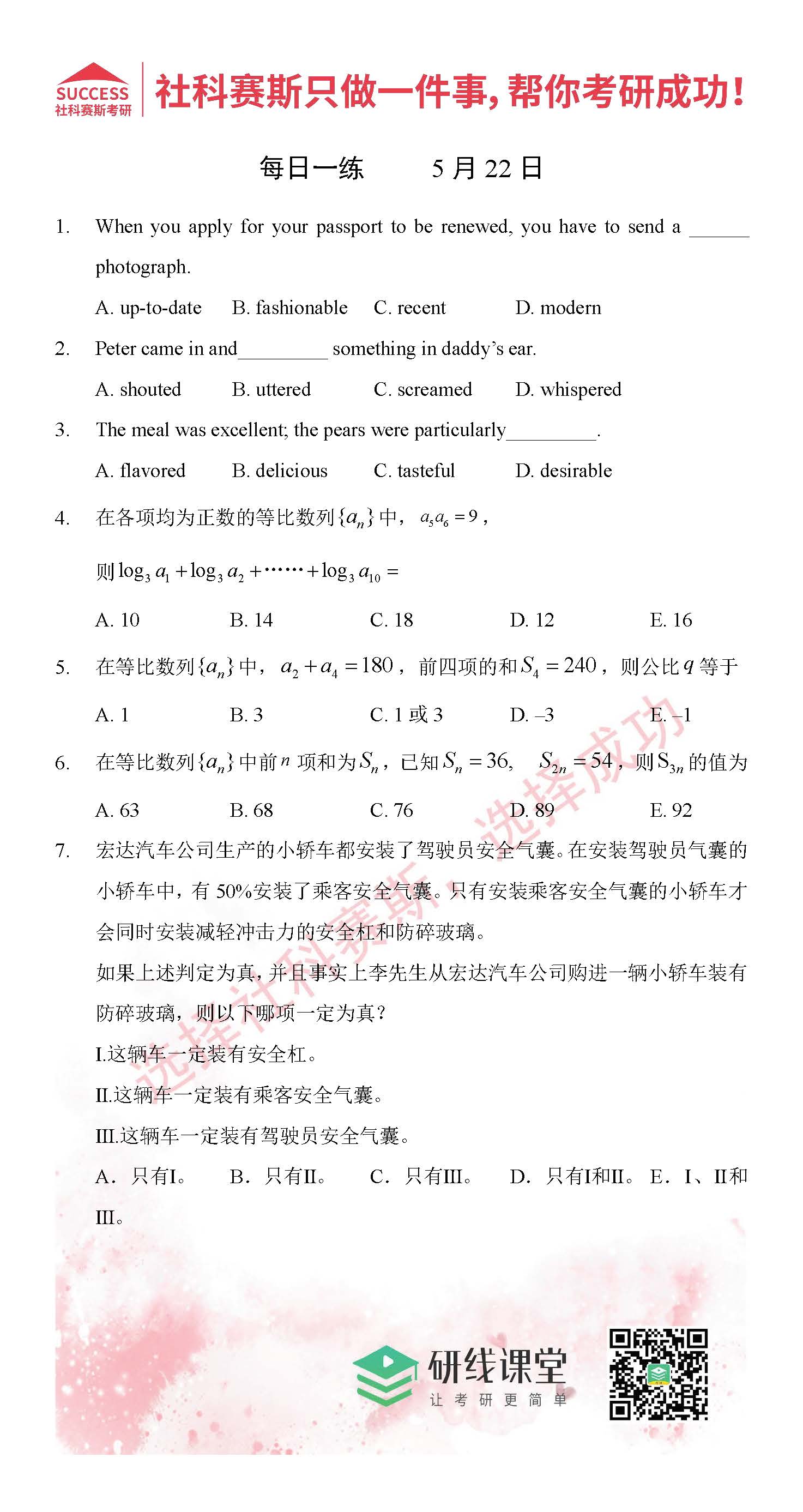 導(dǎo)讀:考研是一場(chǎng)持久戰(zhàn),保持良好的學(xué)習(xí)習(xí)慣,是能確保復(fù)習(xí)高效的關(guān)鍵。MBA備考網(wǎng)小編整理了管綜的每日一練,希望能對(duì)廣大考生有所幫助。