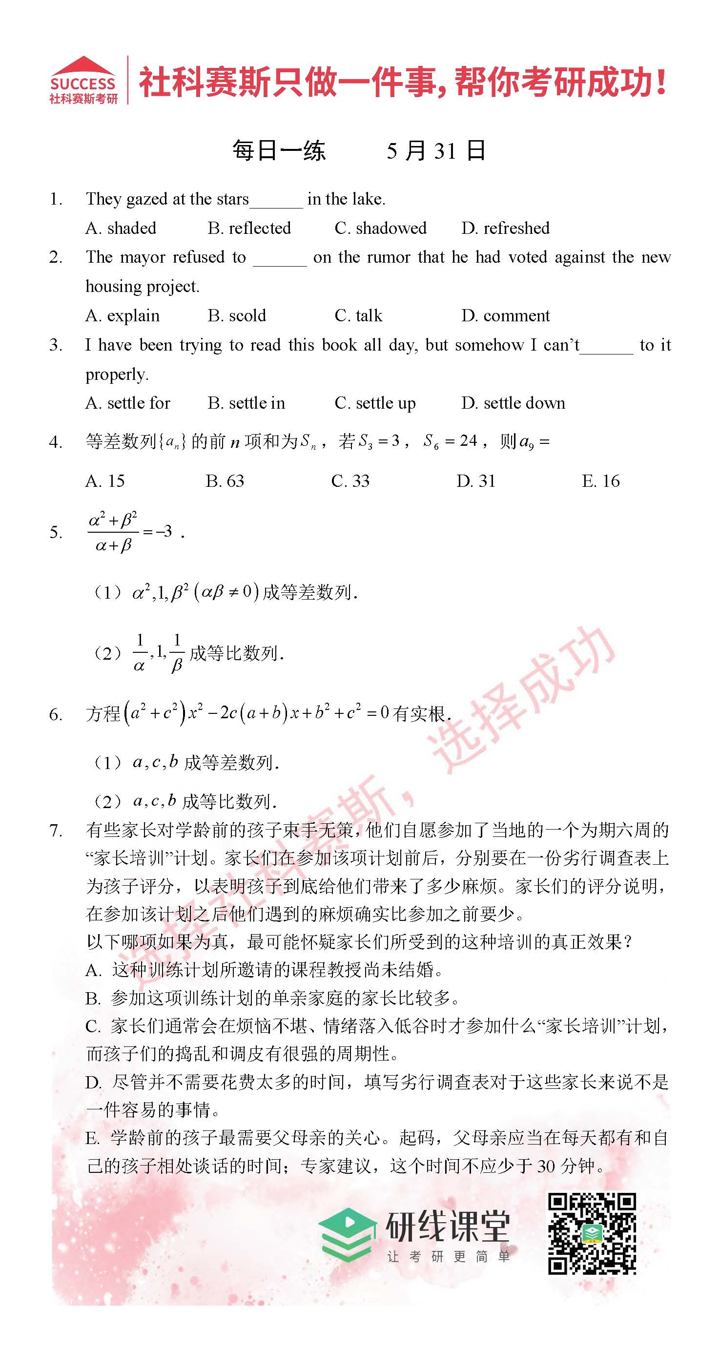 導(dǎo)讀:考研是一場(chǎng)持久戰(zhàn),保持良好的學(xué)習(xí)習(xí)慣,是能確保復(fù)習(xí)高效的關(guān)鍵。MBA備考網(wǎng)小編整理了管綜的每日一練,希望能對(duì)廣大考生有所幫助。