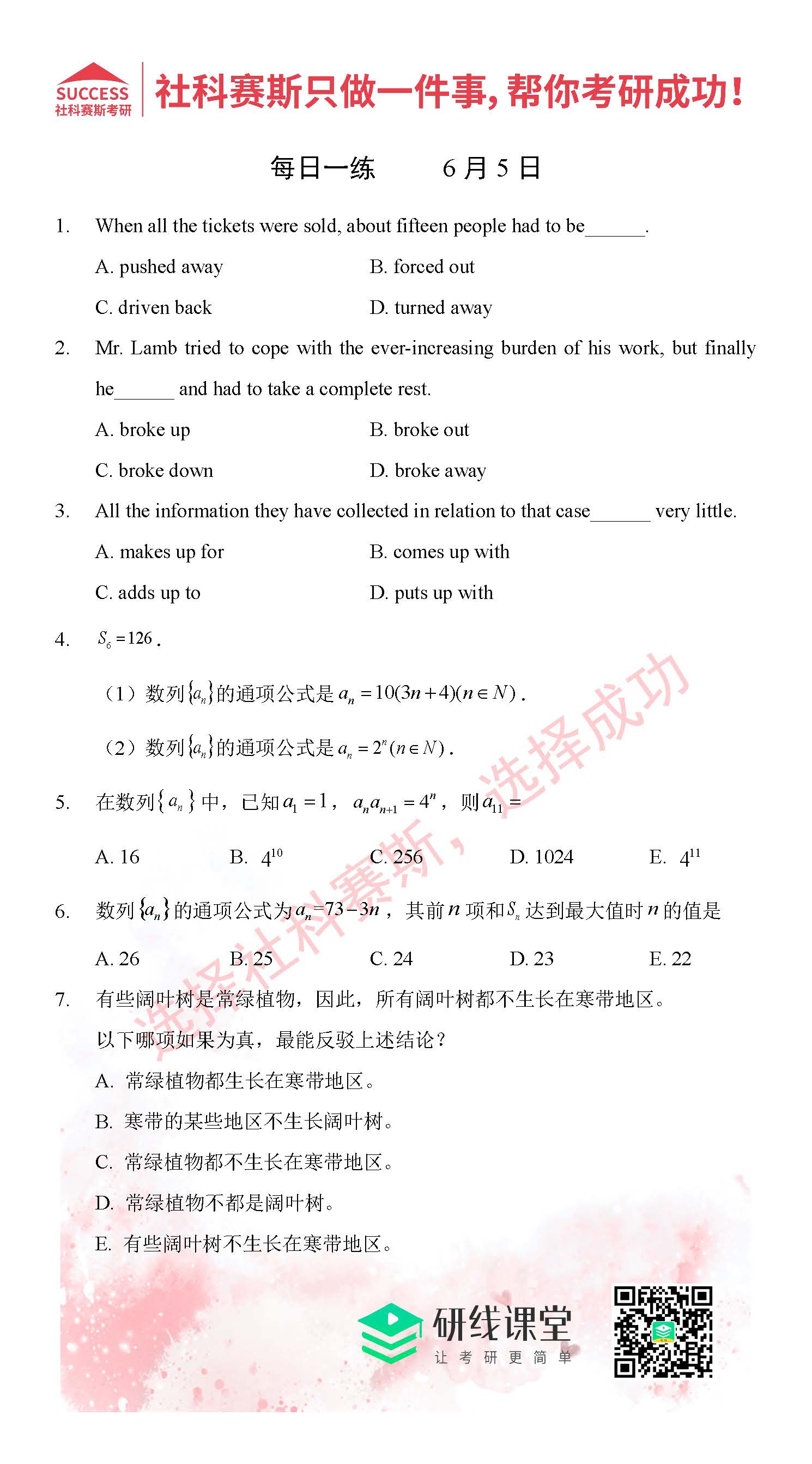 導(dǎo)讀:考研是一場持久戰(zhàn),保持良好的學(xué)習(xí)習(xí)慣,是能確保復(fù)習(xí)高效的關(guān)鍵。MBA備考網(wǎng)小編整理了管綜的每日一練,希望能對廣大考生有所幫助。