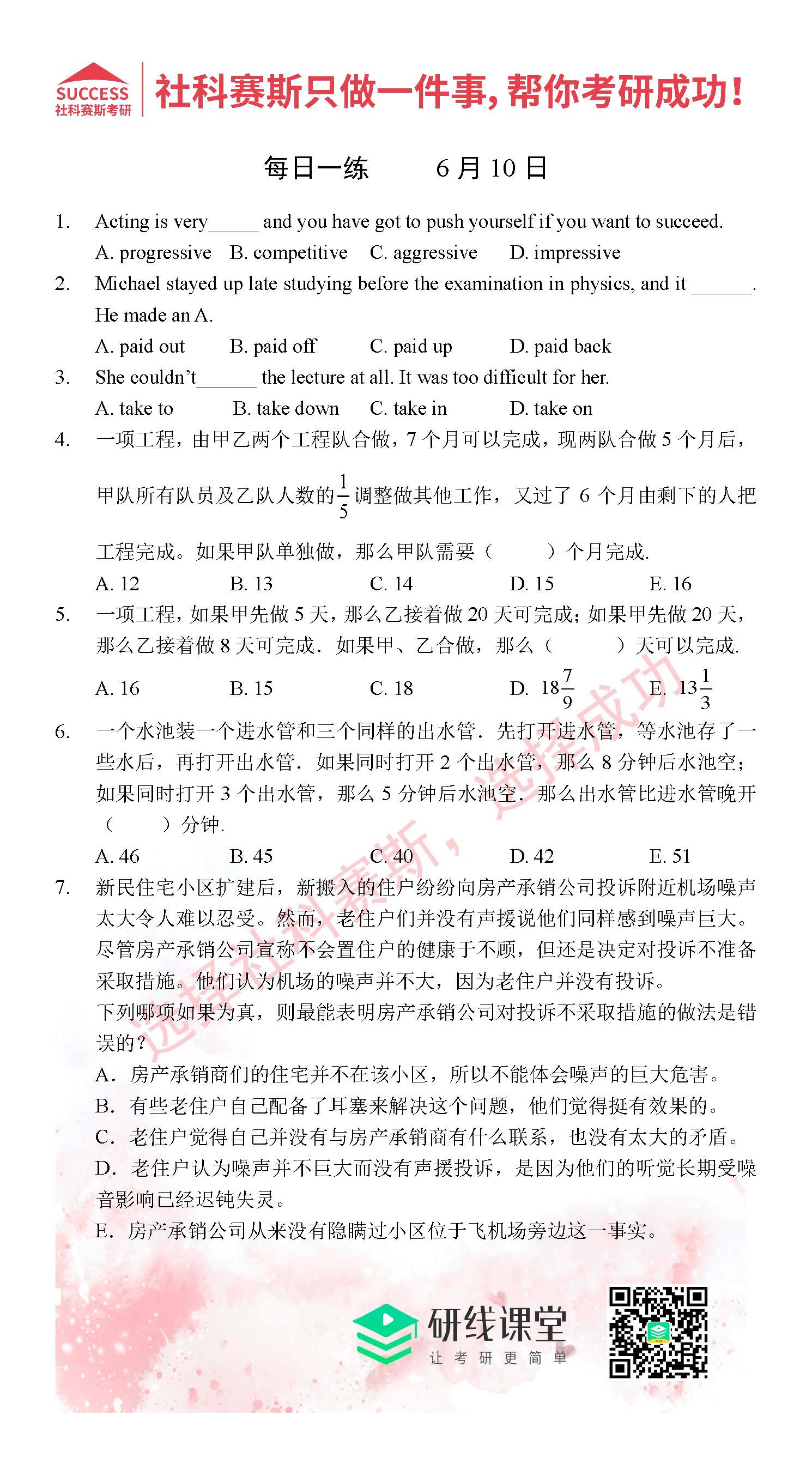 導(dǎo)讀:考研是一場(chǎng)持久戰(zhàn),保持良好的學(xué)習(xí)習(xí)慣,是能確保復(fù)習(xí)高效的關(guān)鍵。MBA備考網(wǎng)小編整理了管綜的每日一練,希望能對(duì)廣大考生有所幫助。