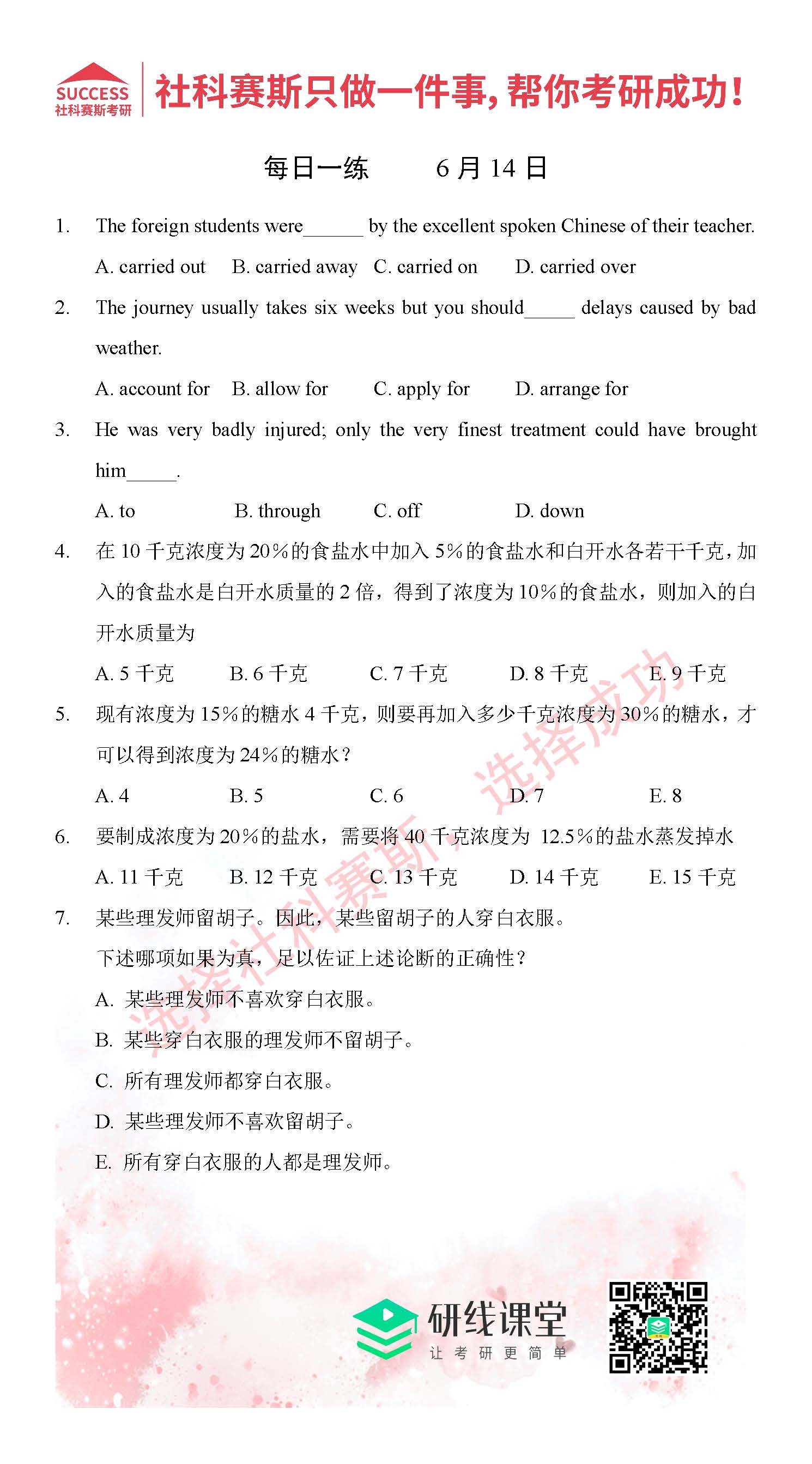 考研是一場持久戰(zhàn),保持良好的學習習慣,是能確保復習高效的關鍵。MBA備考網(wǎng)小編整理了管綜的每日一練,希望能對廣大考生有所幫助。